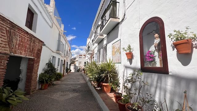 I suggested that we have a slower start the next day. We got breakfast at a nearby cafe and finally hit the road at 11 am. Two months earlier, my good friend David had taken me to one of Spain’s most beautiful white building villages, Frigiliana. I knew instantly that I had to bring Paul and Susan. The temperature was hot but we started up at a mirador high above the village. Then we parked near the center and started exploring all its quaint streets. For lunch I booked a nice restaurant with a stunning view out to the sea. It was pricey but I am glad I had booked since I hate having to find a place to eat at the last minute.