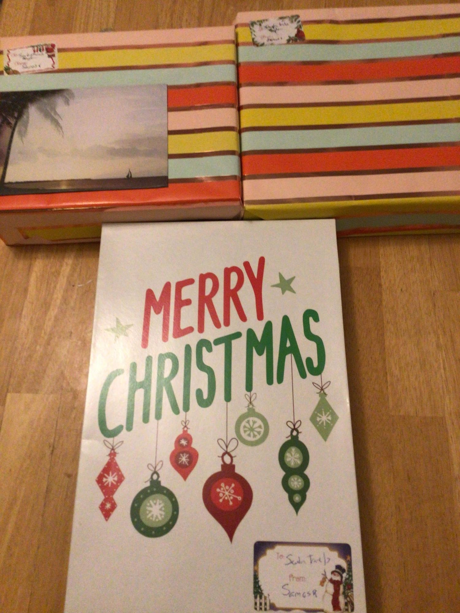 The gifts are under our Christmas tree. We plan to open them on Christmas Eve.