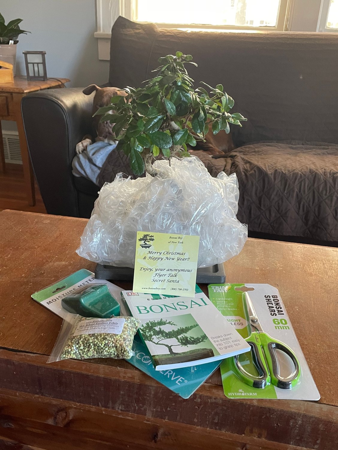 Thank you very much to my secret Santa. It was very generous of you to include the tools I’d need to take care of my new bonsai tree.