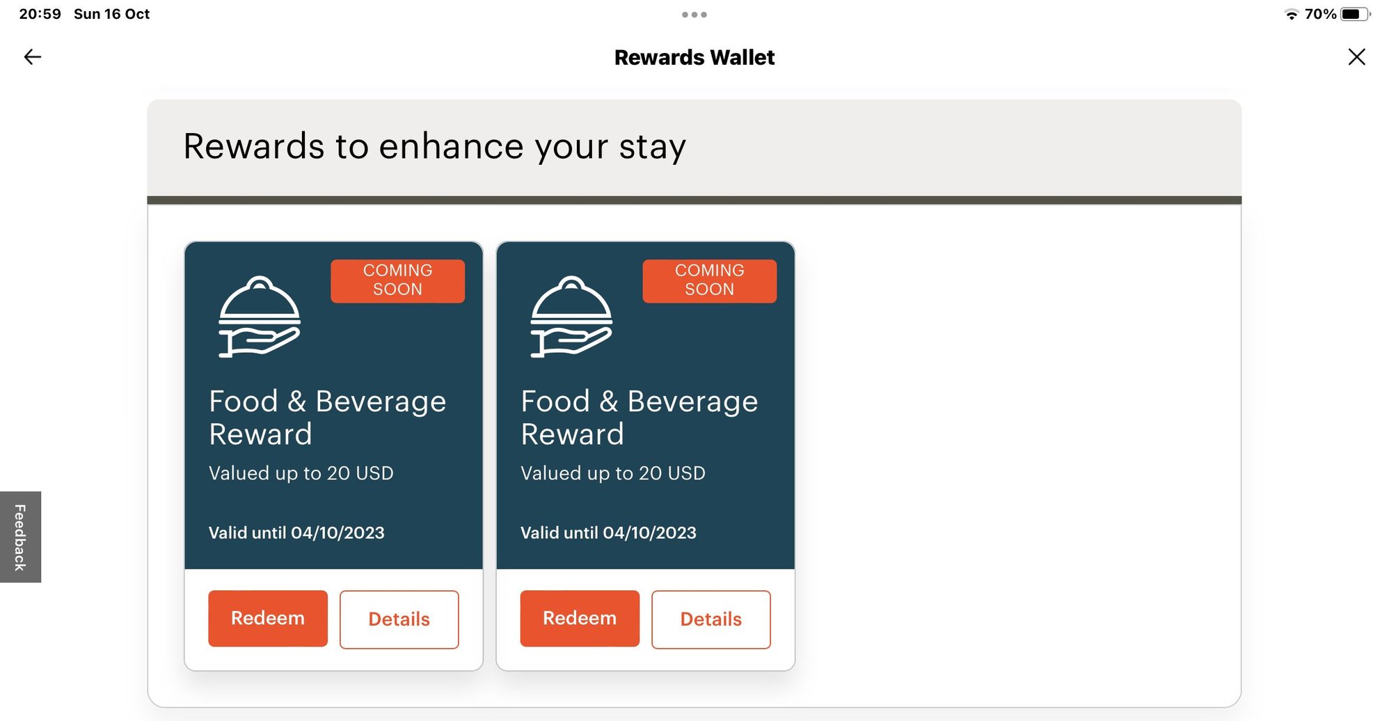 * i think if you can connect to the hotel's own wifi under your IHG account number the chances are that the system has your reservation + checkin + membership number all confirmed and should pose no deterrent from using the F&B vouchers.