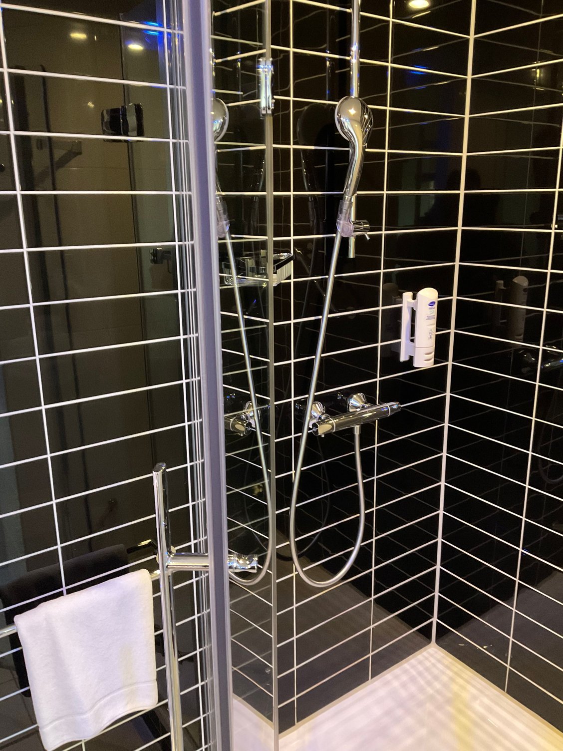 Shower with only 2 in 1 (shampoo/showergell) wallmounted dispenser