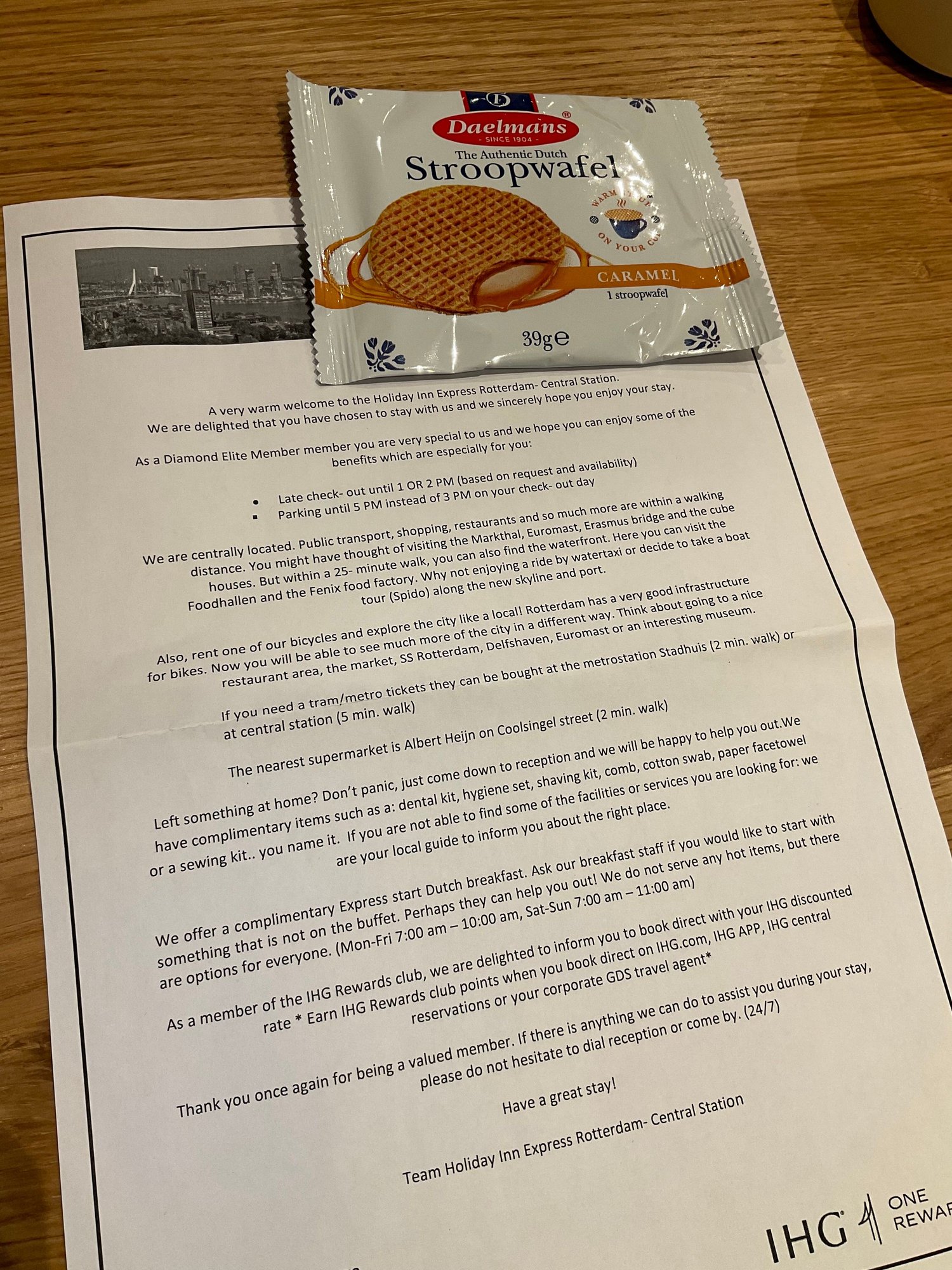 The HIX Rotterdam recognizes IHG-1rewards loyalty elite guests.