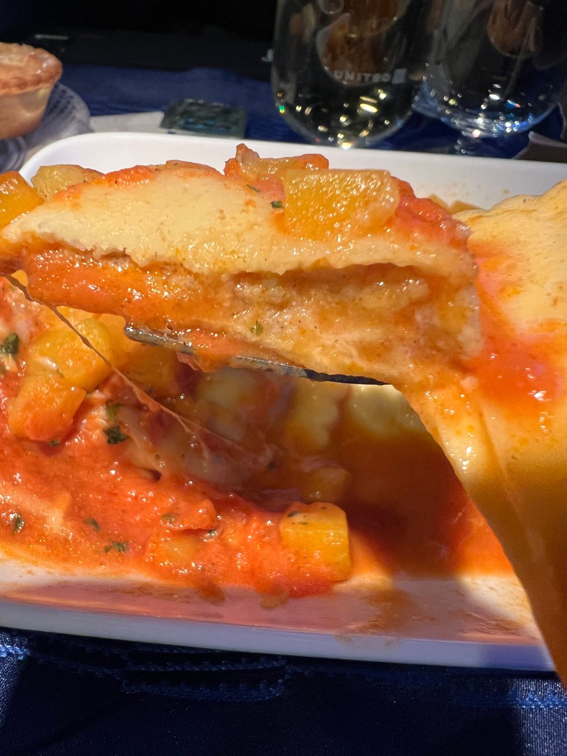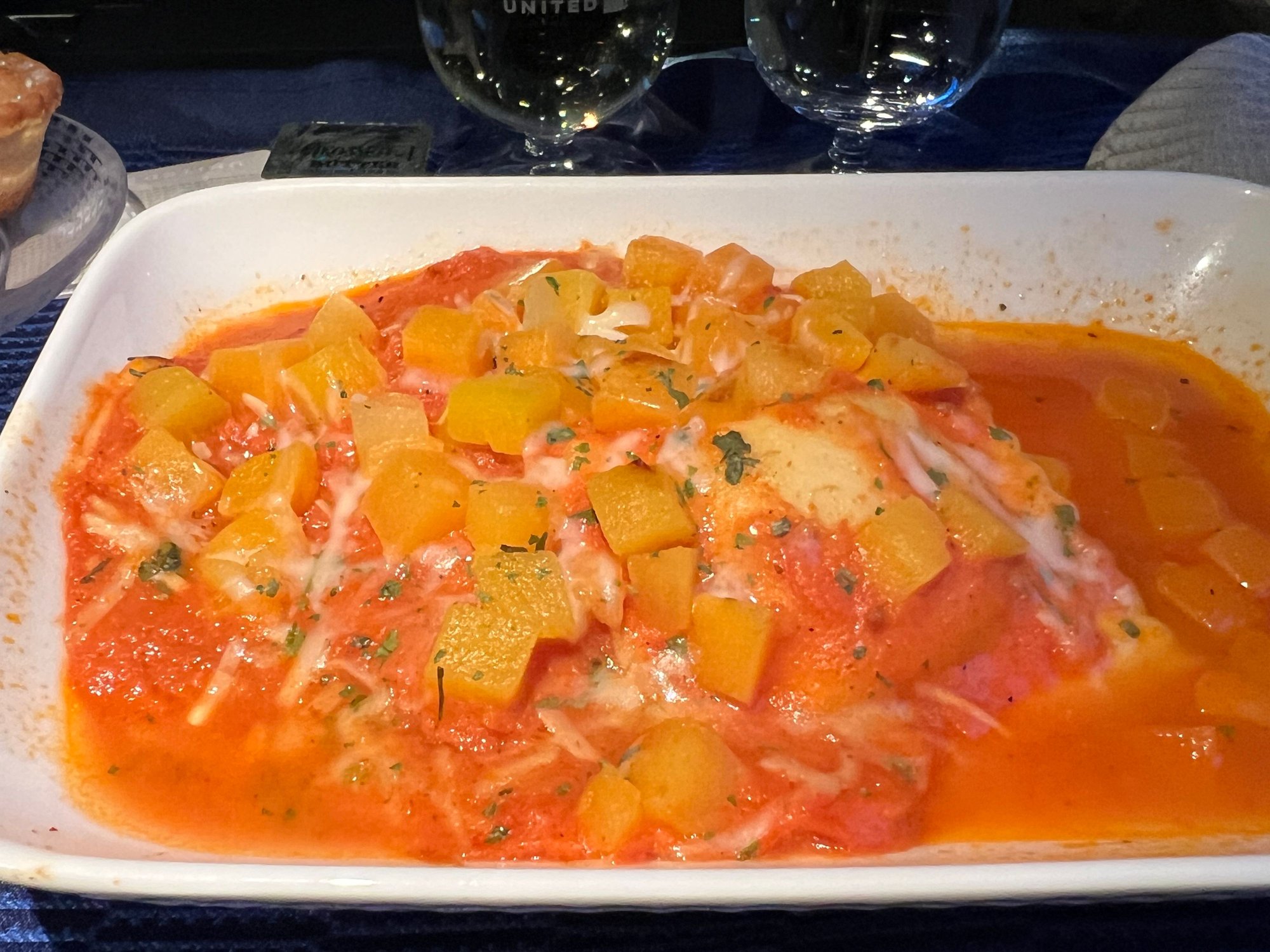 Flight attendant asked me if I want “chicken” or “butternut squash”. I asked her “butternut squash soup”? She said butternut squash pasta….
