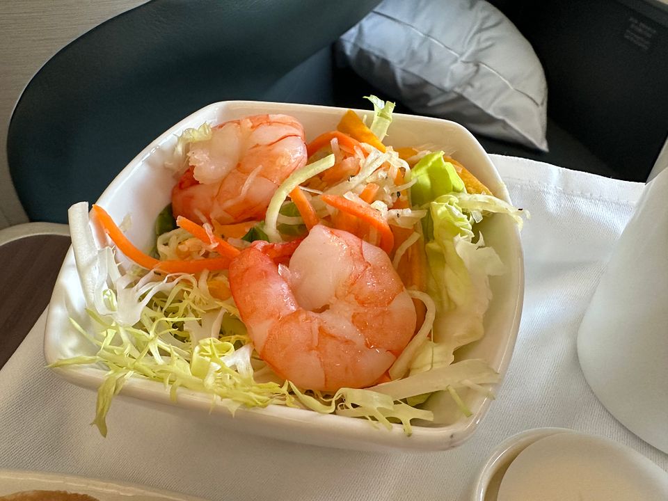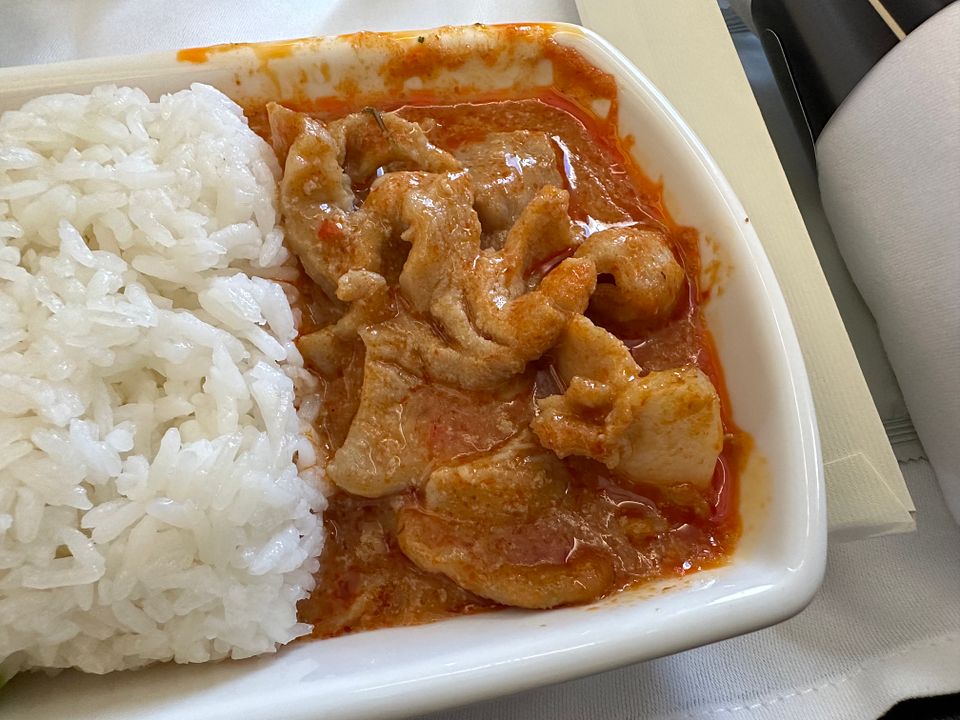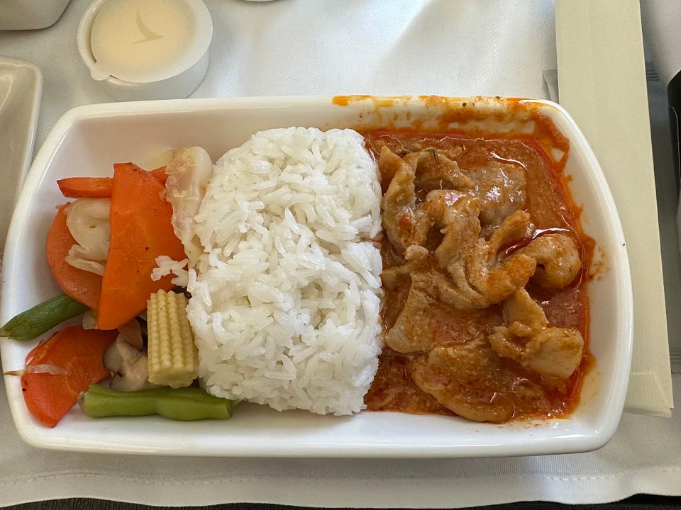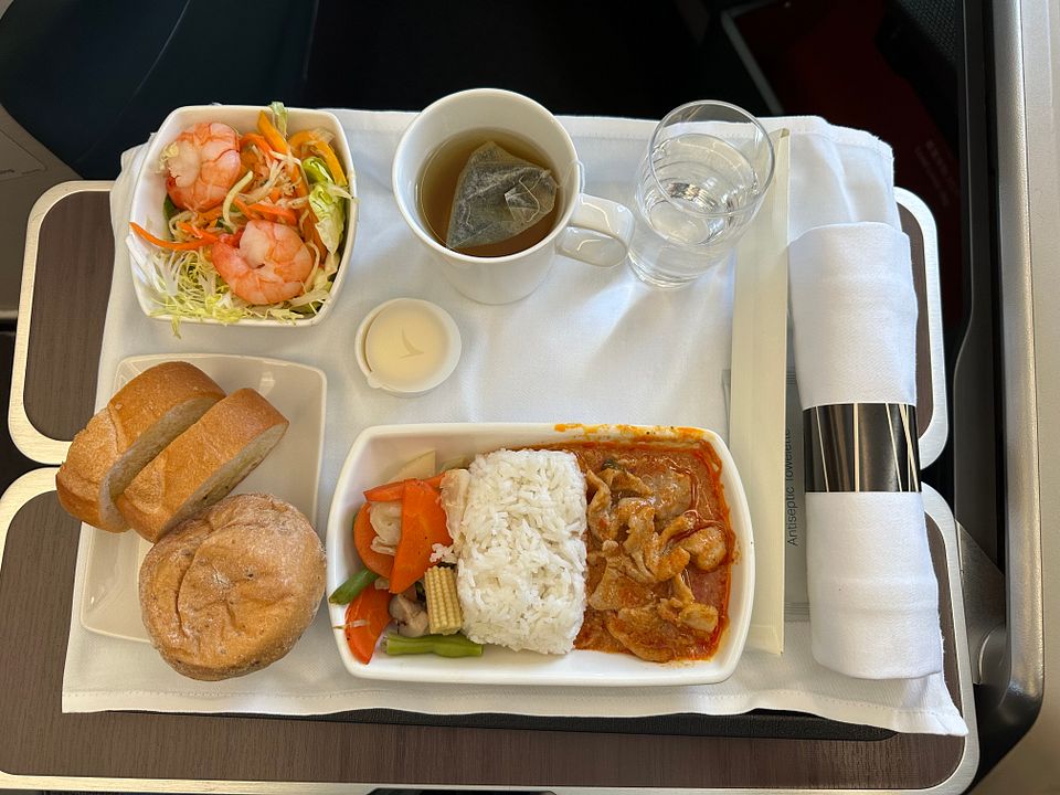 The meal itself was good except the soft olive roll. I like the Thai curry pork and the shrimp and mixed vegetable salad.