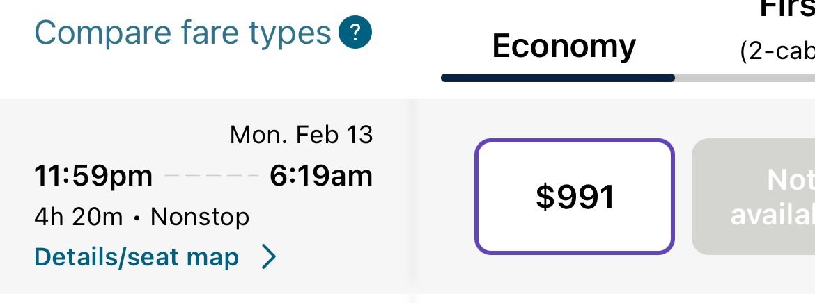 There is also a late night return on the 12th-sold out in first-on the 757-300.