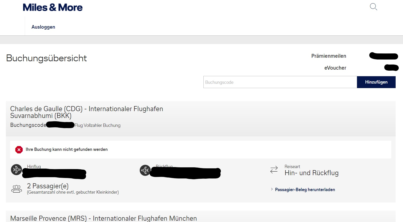 In typical LH IT fashion, this too is inoperable at the moment—all bookings show up yet display "your booking can not be found" within them—but I presume that at some point in the distant future, applicable flights might be able to be upgraded here. Following the logic of M&M online award flight bookings, I would assume that only upgrades that are instantly available would be possible online; I would be shocked if it let you do anything waitlist-related.