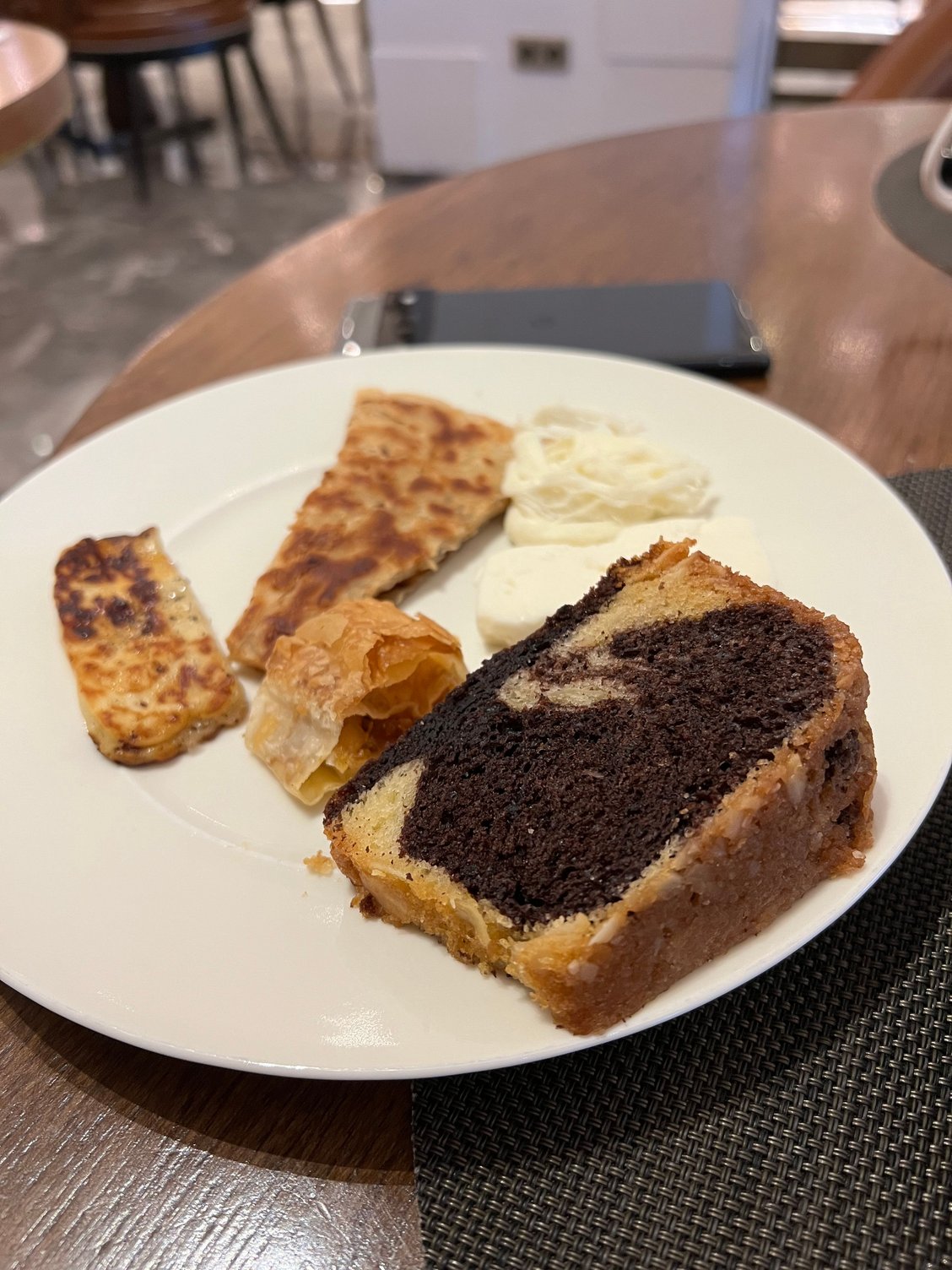 - Omelet was tasty, and I liked the flatbread and marble cake