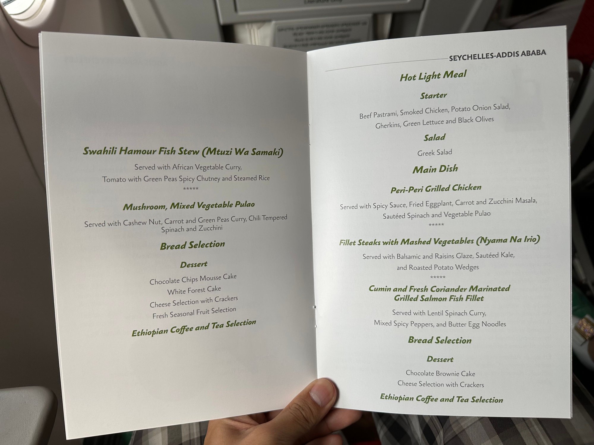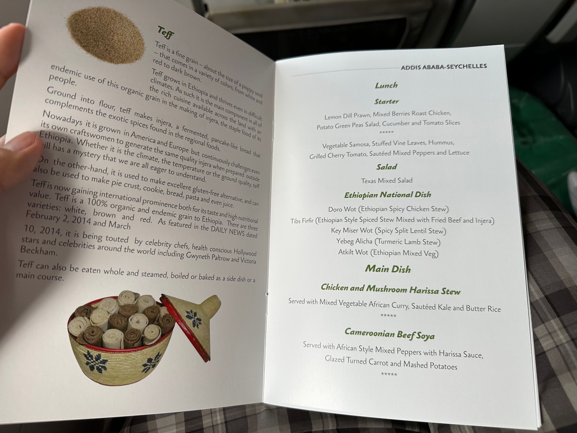 Despite being a 3hr flght time in the air the meal service is extremely impressive. Once again the highlight of the meal was the Ethiopian National Dish. Proactively offered seconds which I took. Ordered the fish for the main entree which is a mistake as it had a fishy taste/smell which wasn't very good.