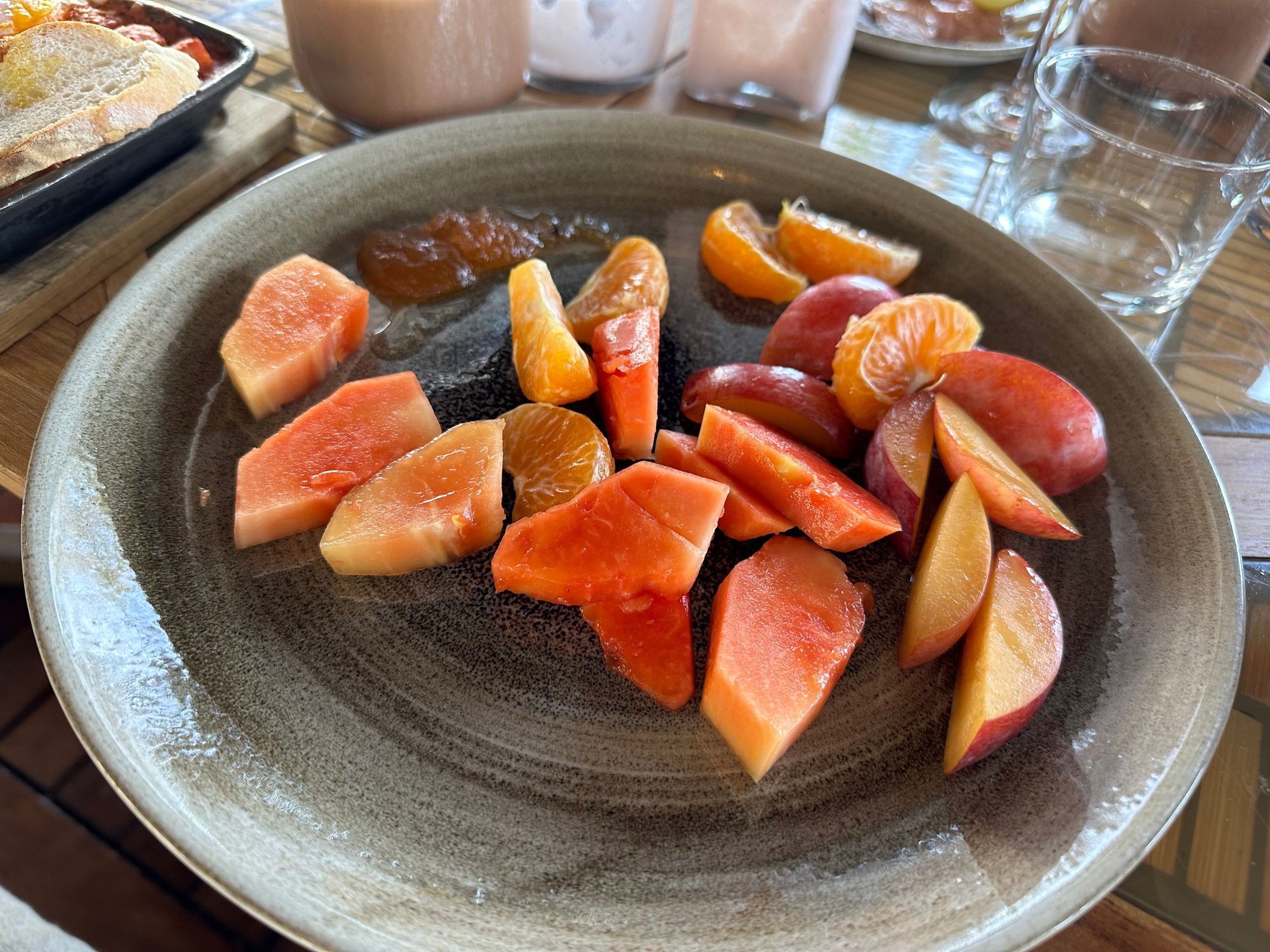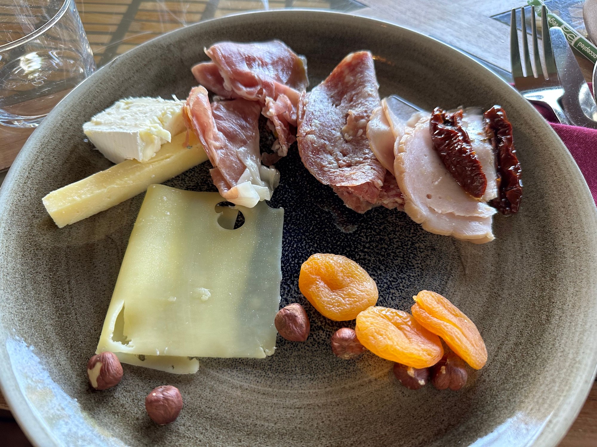 Cold food/drinks were served on the buffet. Hot items were ordered off the menu. Cheese and cold cuts were very high quality and quite good. Other things were good but not particularly impressive. Came around 9AM and all the tables near the railing were taken already so had to sit a few feet away in one of the interior tables.