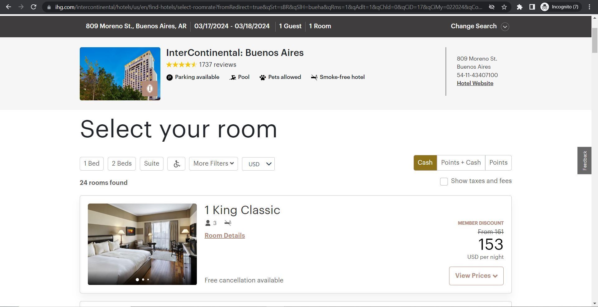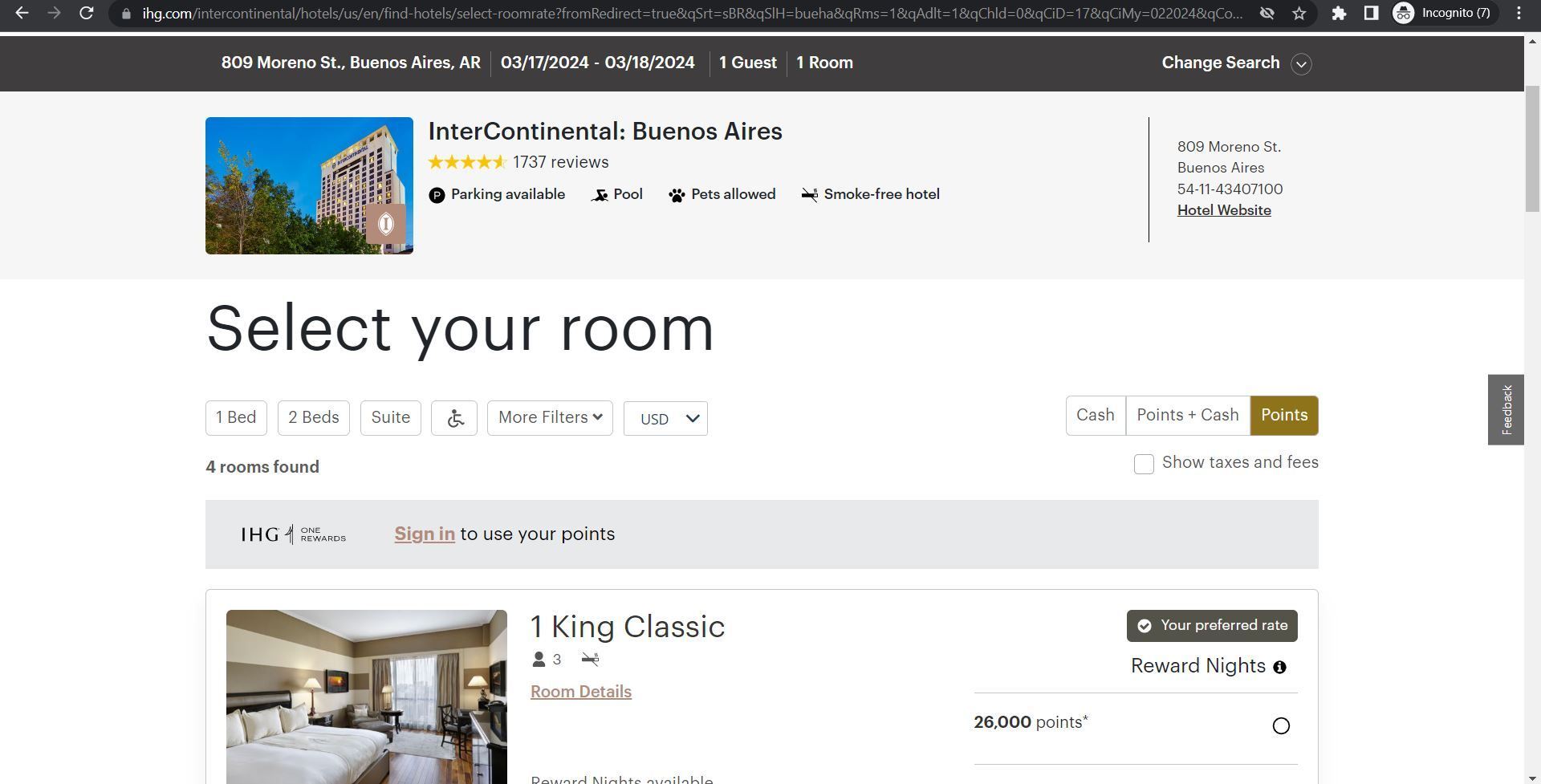 Single night deal at the InterContinental Buenos Aires - March 17 to March 18, 2024 (very end of schedule) you can book a room for $153/night or 26k points. The nightly rate is usually $200+ or 35k+ points/night.