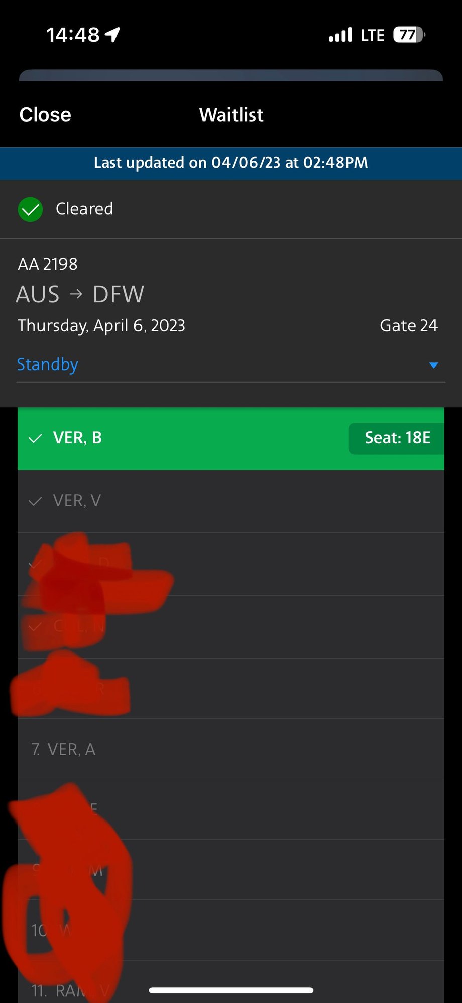 The lack of replies must mean there may have been bewilderment. Battlefield results indicate that perhaps being an AA Exec companion card holder and reasonable LPs (not enough for Gold though) last year just coincidentally placed my wife in #3. Within 30 minutes of boarding, the battlefield played out as I originally thought. Pic attached, but she fell from our PNR hard and fast in the final minutes.