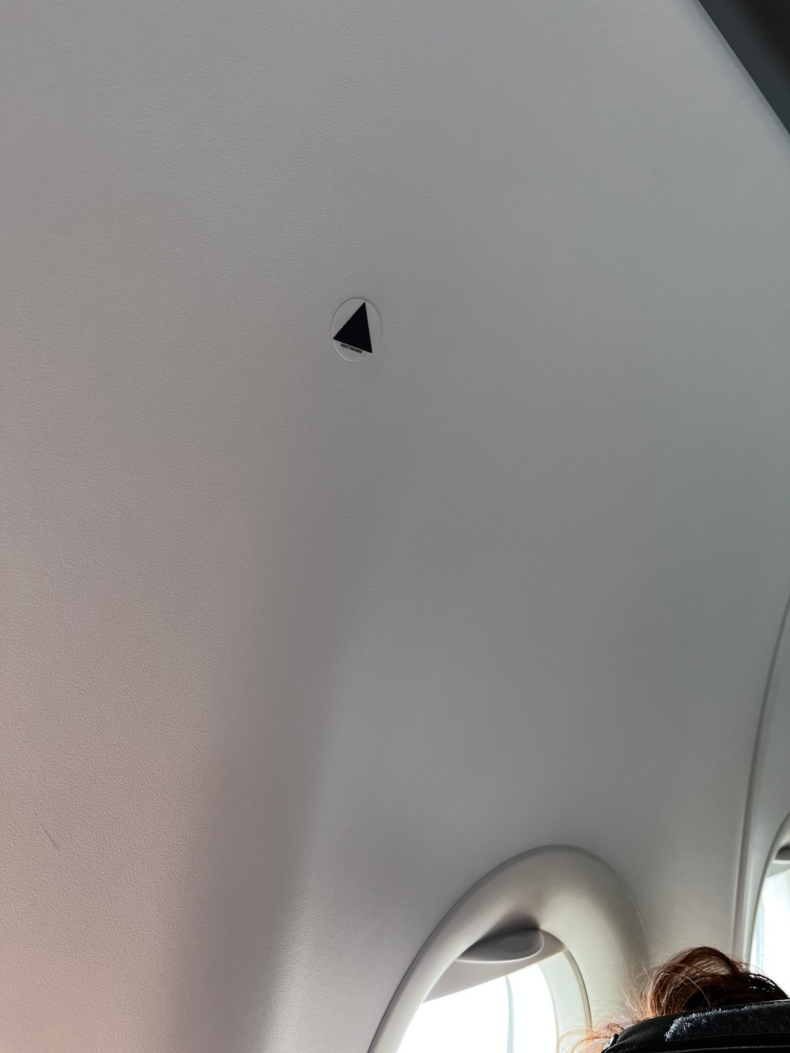 Small black triangles on the cabin wall, between windows and bottom of luggage racks in a A320.