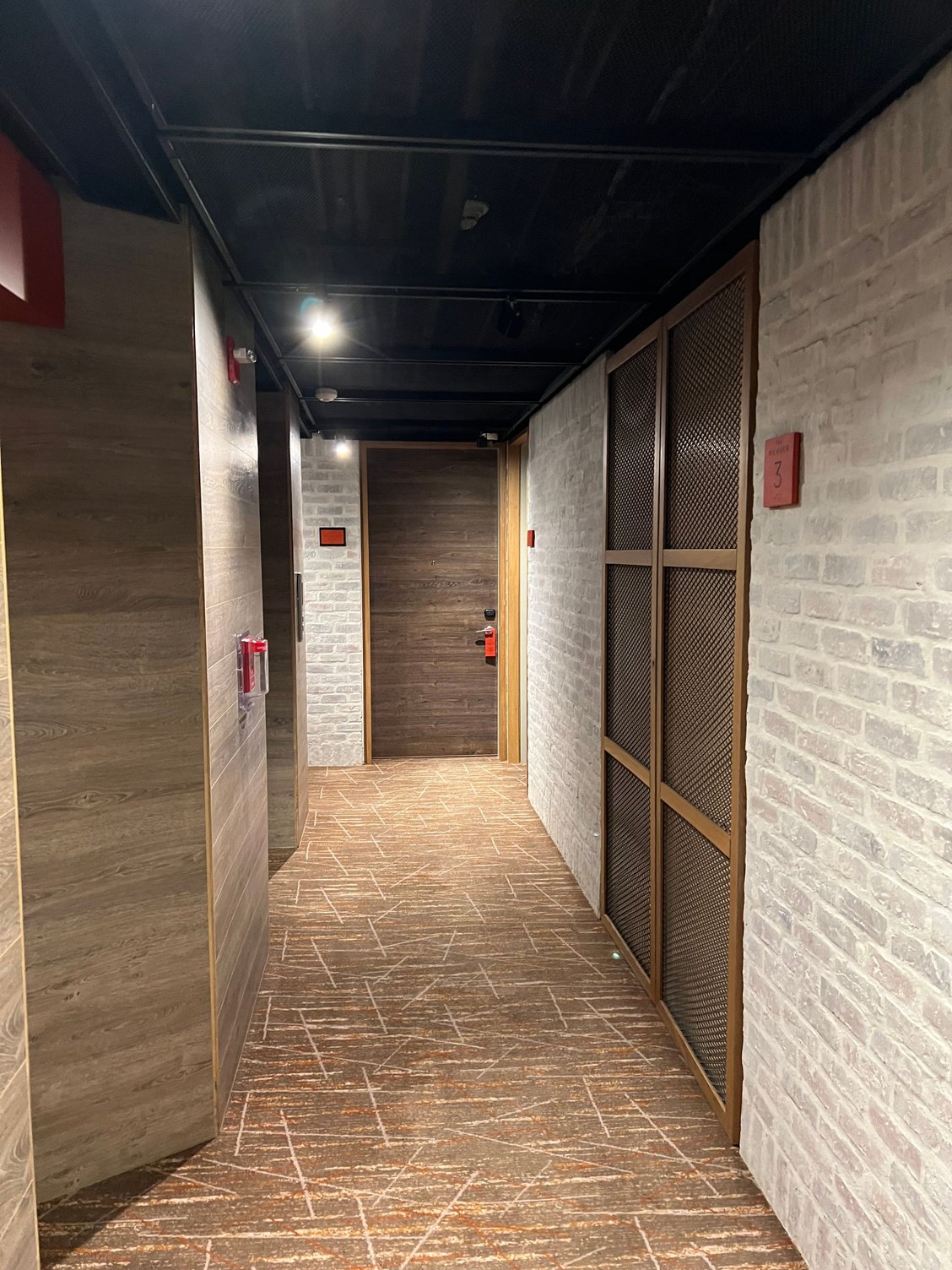 - The room design is nice - good desk, nice exposed brick, bathroom had spacious counter space