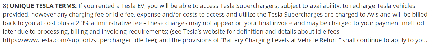 This is a huge change! Good spot! The free supercharging was a great benefit previously, and must have been a significant cost burden to Avis. Adding the admin fee is also just petty. It's minor but shouldn't be there IMO.