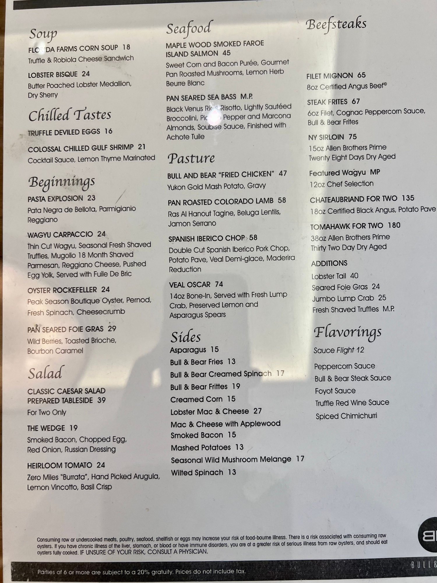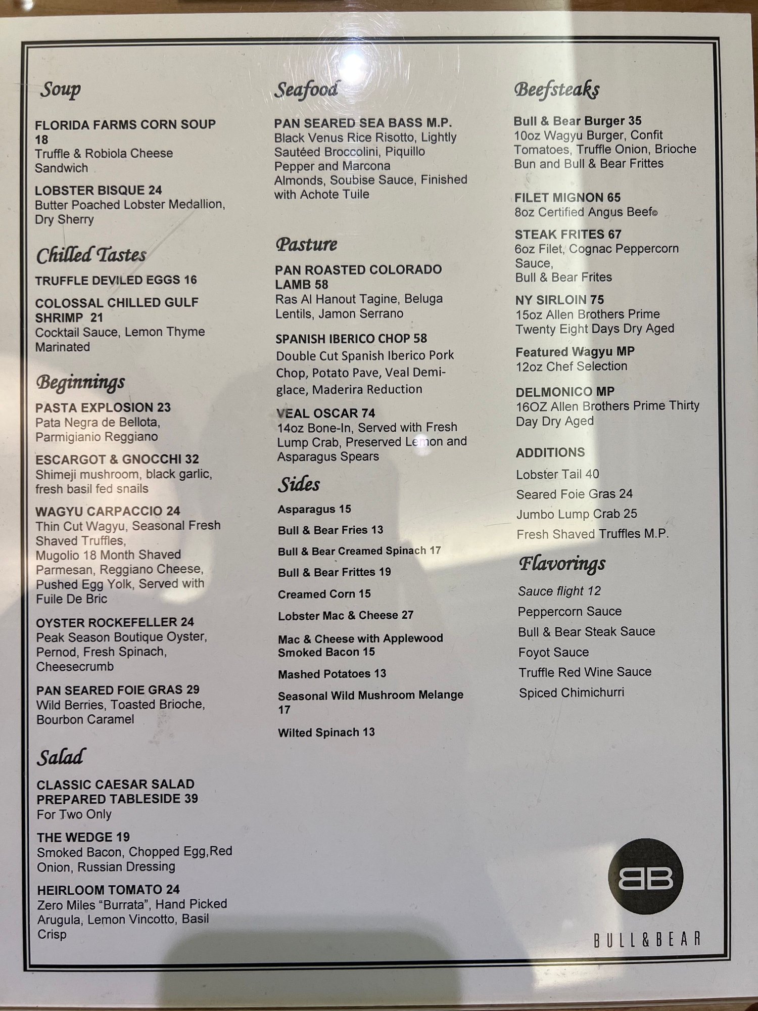^B&B Restaurant dinner menu