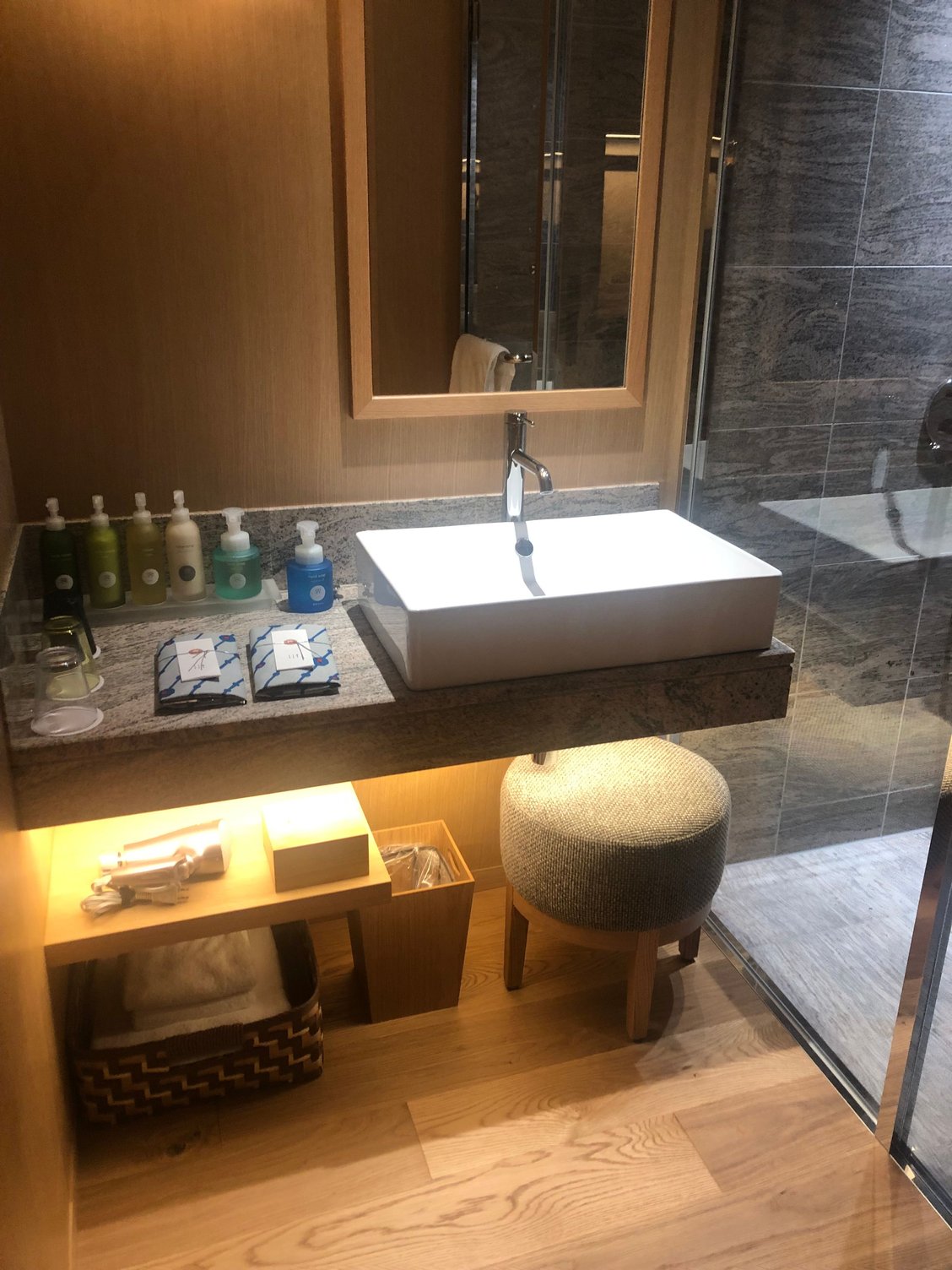 The resort is tastefully designed in an artsy kind of way, and centrally located in Unzen, and each room offers great natural views. We were impressed with the food, although we only ate breakfast, and the common onsen was spacious and relaxing. We were less impressed with the overly spartan design of the room, although some of the larger rooms may have been better. The quality of the wood flooring was very good and solid, but the wood used elsewhere appeared to be of cheaper quality. The lobby, dining room, and onsen were all tastefully designed but the hallways were drab and plain. In particular, I found the building’s exterior to be extremely drab and disappointing considering the effort put into the interior design. The hotel’s atmosphere was Zen-like and introspective due in part to its minimalist design, but perhaps a little too much so for my taste. But since an onsen is for relaxation, there may be many who prefer the somewhat monastic atmosphere. While I think it offers a decent value, at a similar price point, I would consider the Kyushu Hotel (reviewed up thread) next door (even though I preferred the food at Hoshino Resort) a better value and a more luxurious, leisurely, and comfortable option. That said, location-wise it is excellent with access to the walkway that meanders through the Unzen Jigoku just next to the hotel, and the views from the rooms are picturesque.