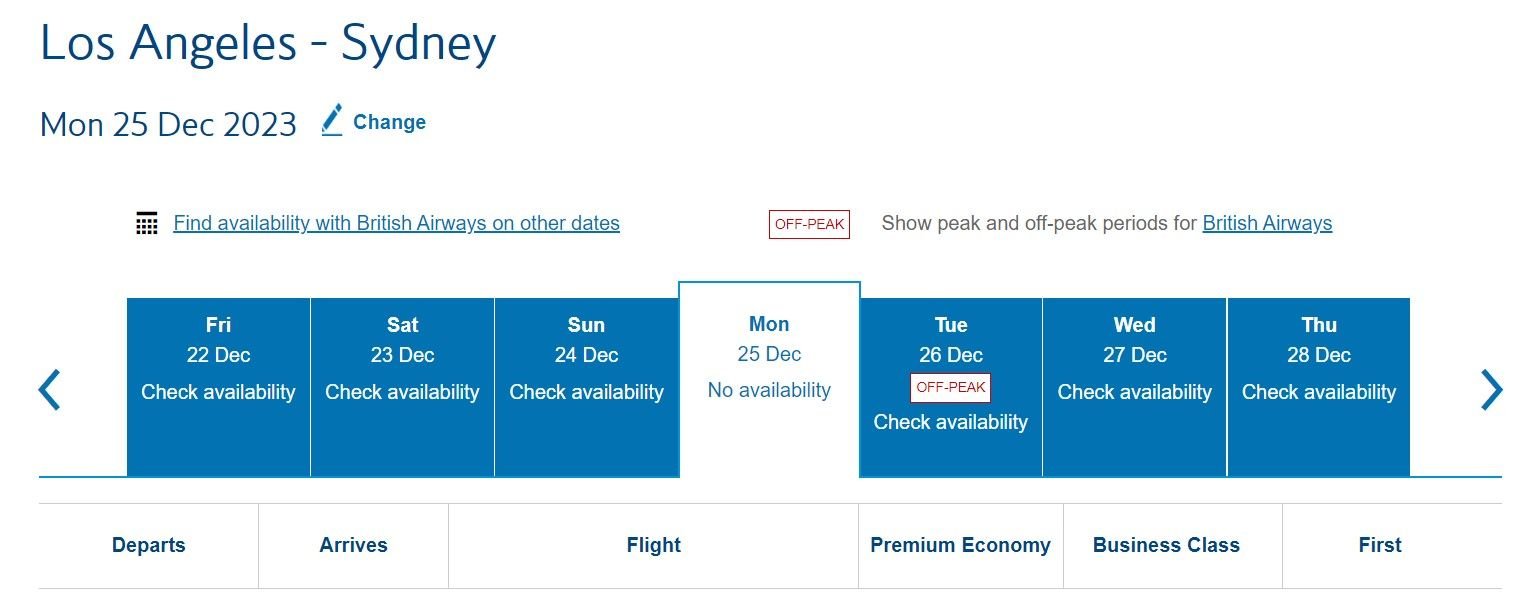 Whereas on BA, you get no seats available -
