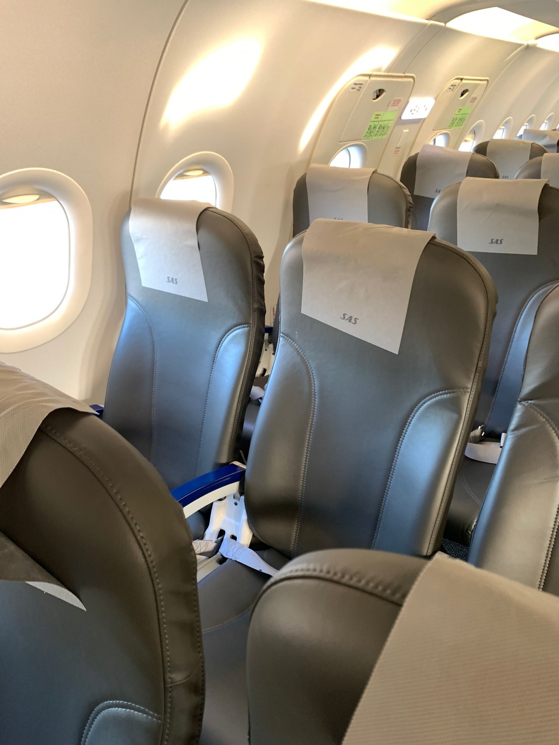 Onboard YL-LDD with SmartLynx for tonight’s SK2031 UME-ARN. Approx. 15 year old A320-232. Cabin is clean and well-presented. Seats unfamiliar, faux-leather finish with SAS antimacassars, SAS Plus bookmark on row 7 and and SAS menus. No USB, power or wifi. Cabin crew in Smartlynx uniforms, some with SAS name badge. Nobody speaks a Nordic language.