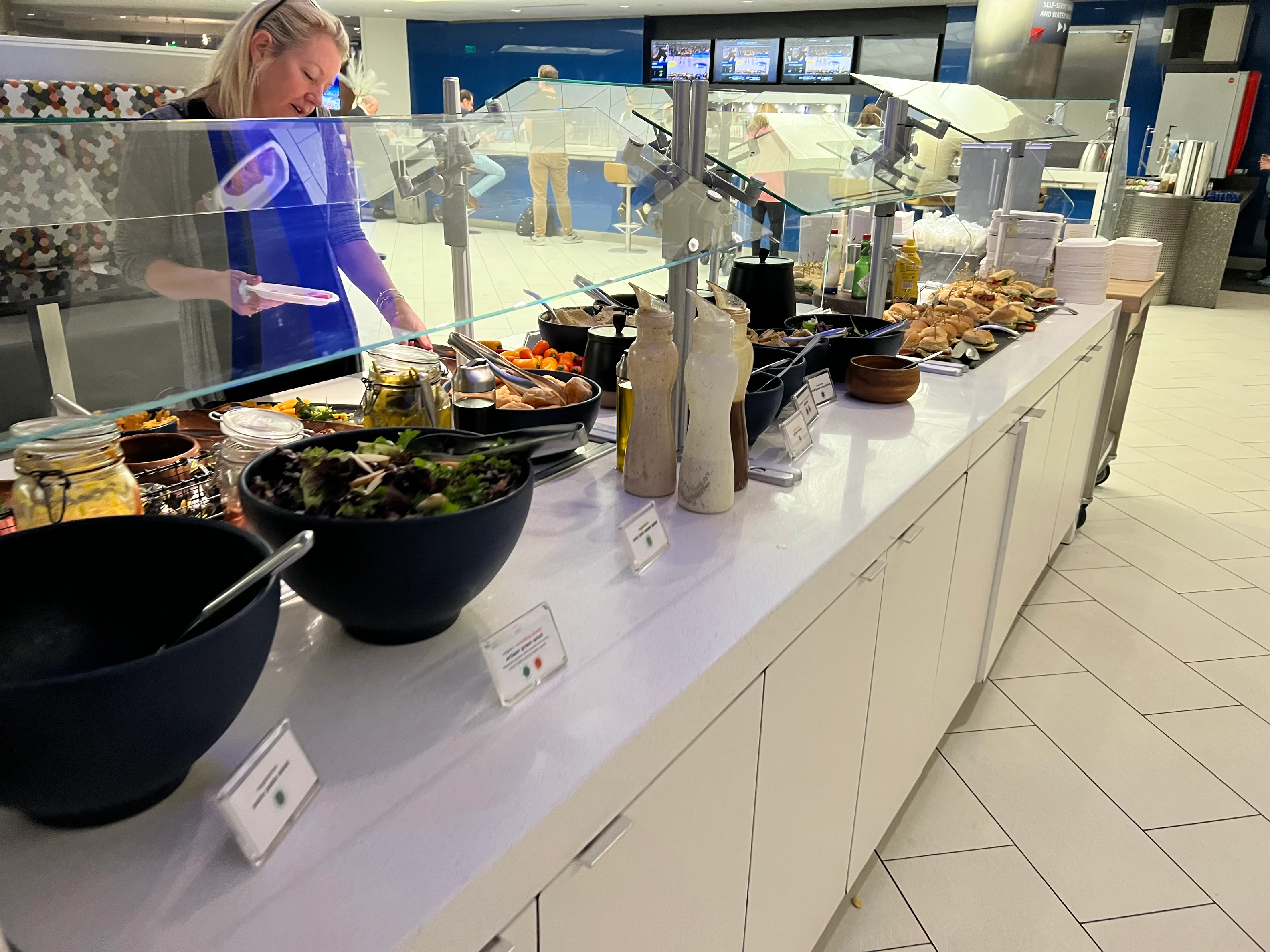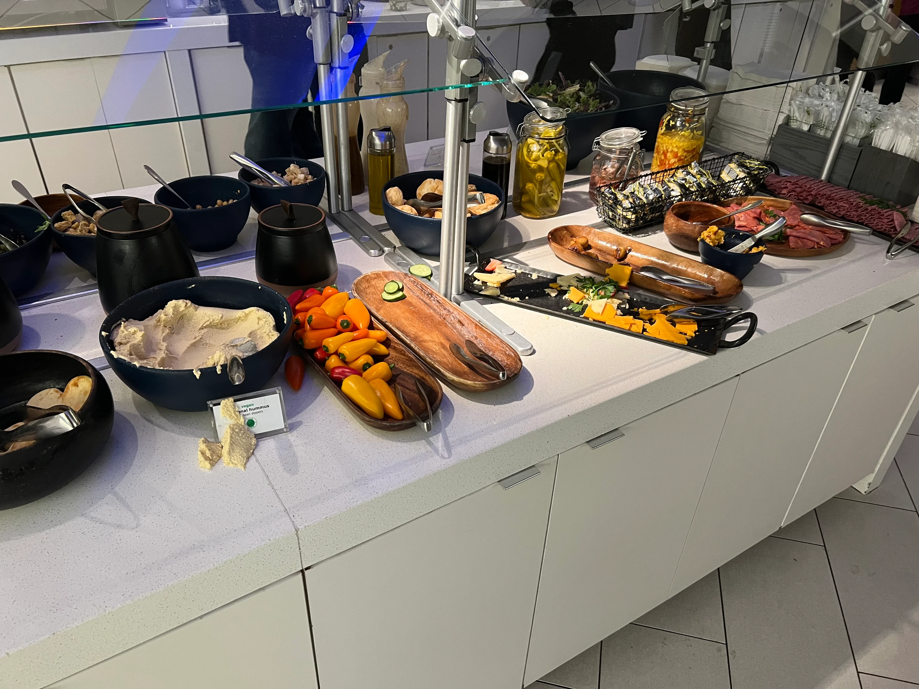 Since we were only in the lounge for the last hour of operation I wasn’t sure what to expect by way of food. I headed over to the buffet area, located between the main portion of the lounge and the bar to check out the spread and was pleasantly surprised to see Sky Club employees constantly checking on and refilling the food.