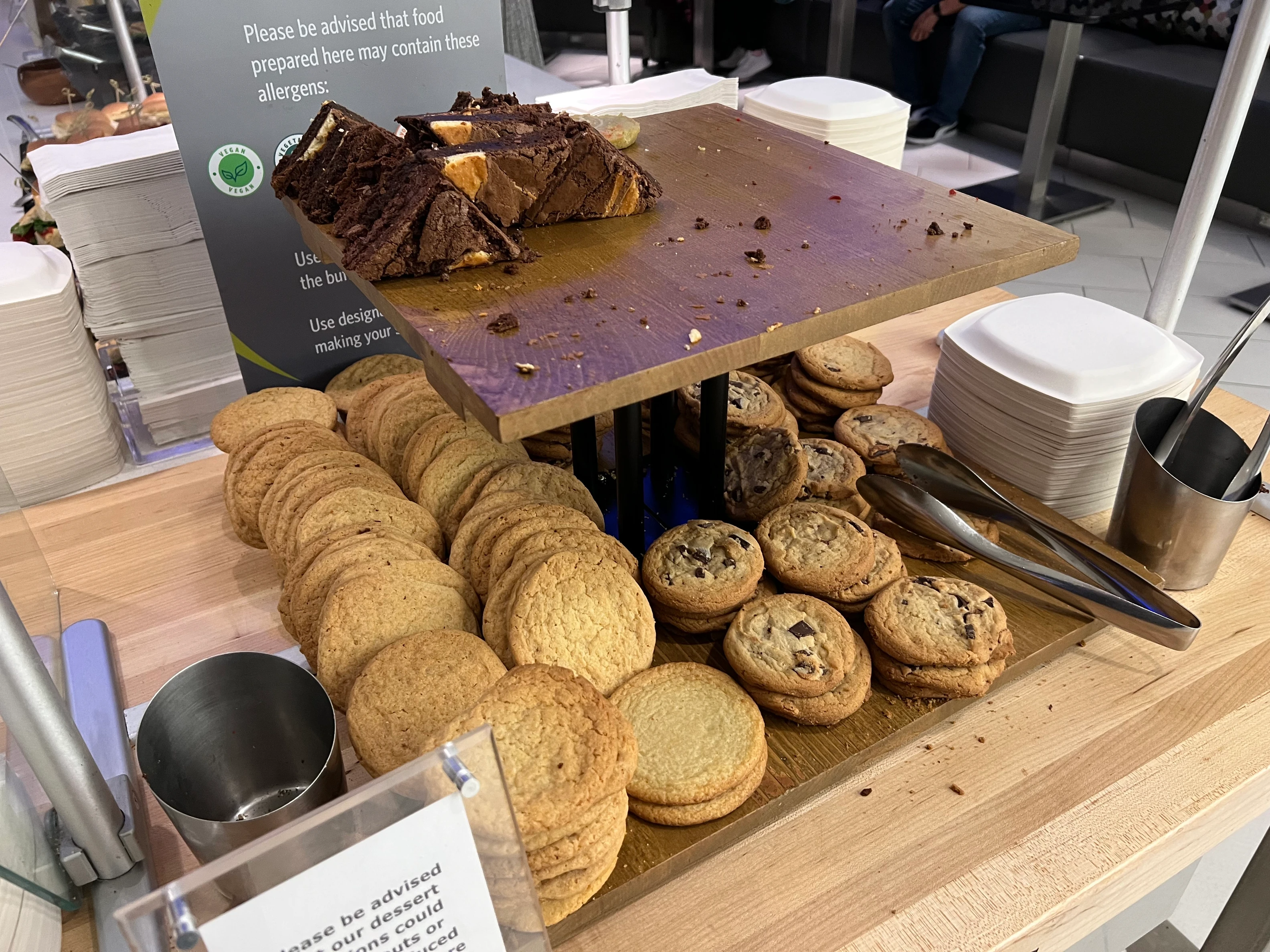 The end cap had cookies and brownies on offer and the backside had some dips, meats and cheeses.