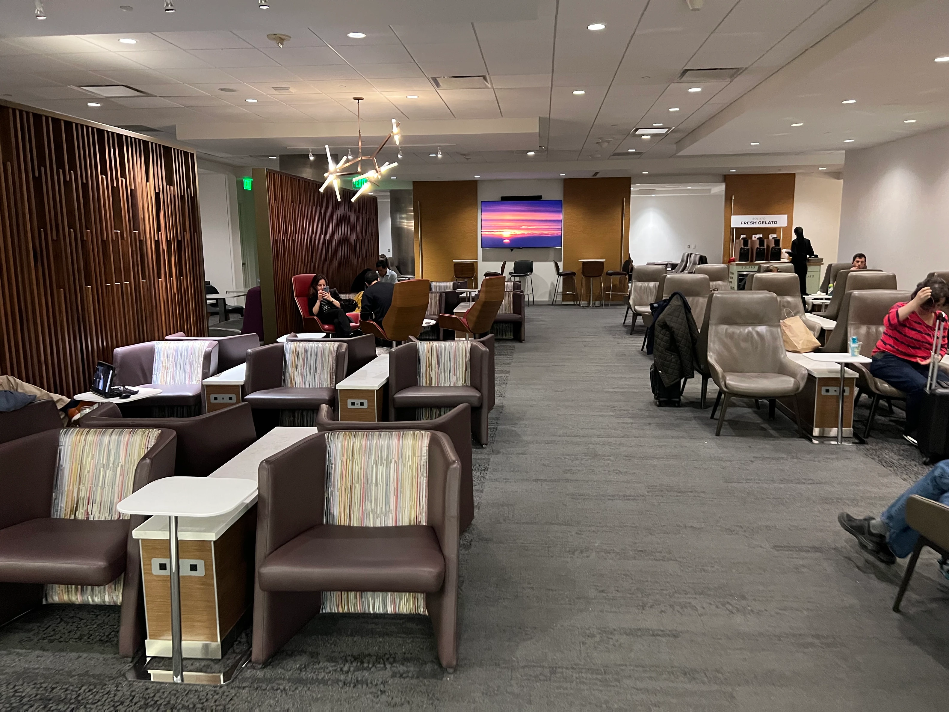 Due to the massive crowding at Delta Sky Clubs recently, we’ve seen Delta overhaul the entry requirements. The easiest way to enter the lounge is by using a qualifying American Express credit card (including the AmEx Platinum and Delta Reserve cards) or by having a Sky Club membership and a same day Delta boarding pass. We accessed the lounge using our American Express Platinum Cards. The friendly agents checked us in and informed us of our flight status and departure gate. Delta has also rolled out a handy feature in their app that will list the Sky Clubs at hub airports along with how busy they are.