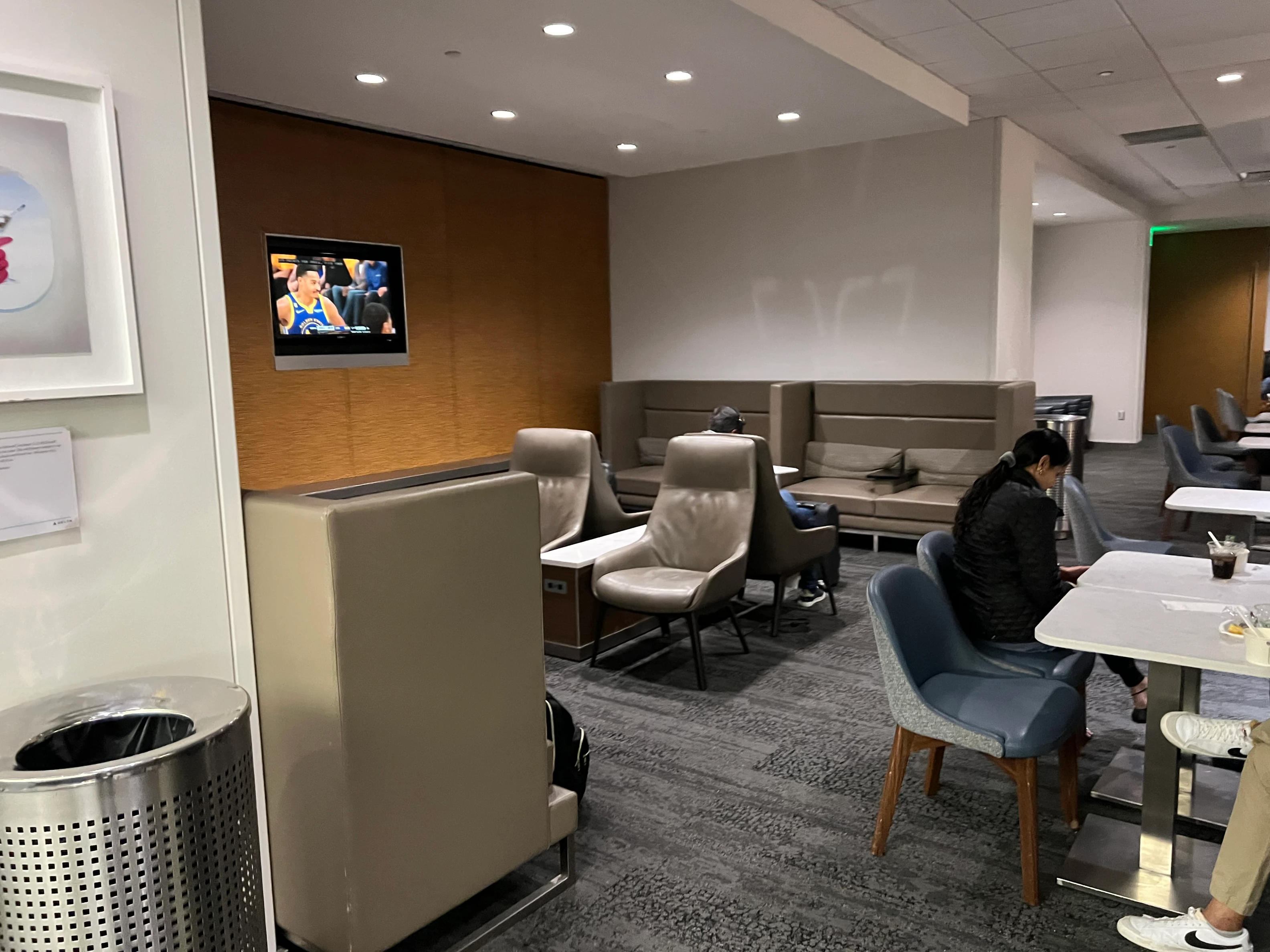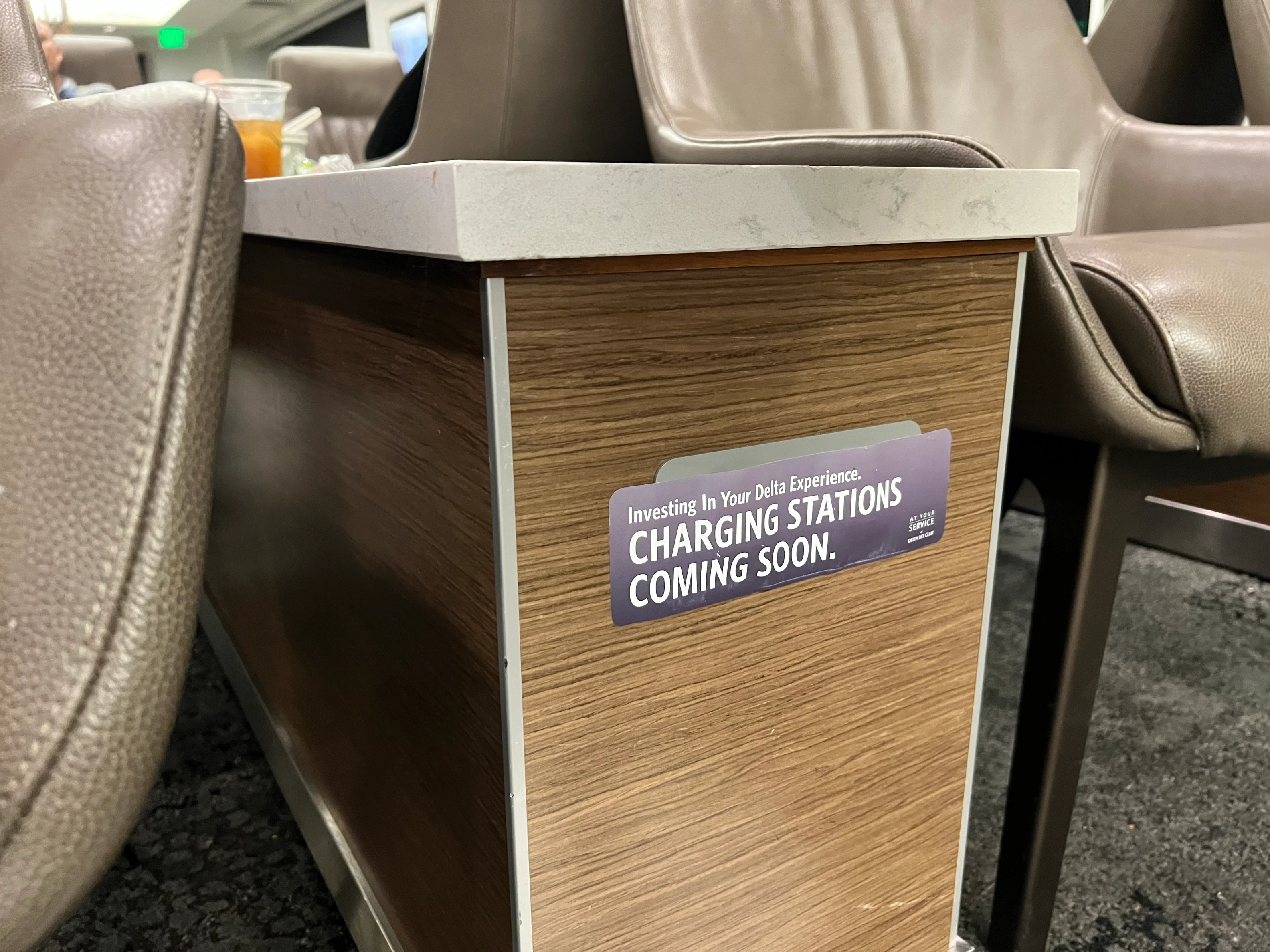 We found a seat at one of the booths built into the wall dividing the seating from the buffet area. The main part of the lounge is where you really started to notice that the lounge was showing a little wear and tear. They did have signs at the seats saying that power was coming soon, but even those seemed like they had been around for a while.