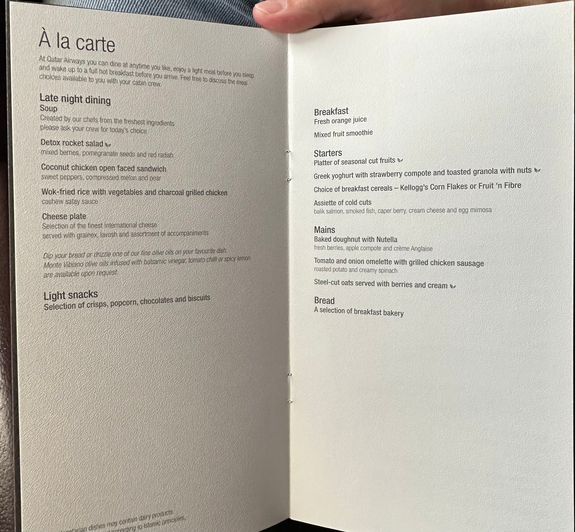 QR 976 DOH-HAN only 4 of us in J, was a nice flight overall and plenty of food for a 6 hour flight. I had the cheese plate after take off and some drinks (LP rose mostly) while the other passengers went to sleep. Only first world problem was that for breakfast I had pre ordered the Qatari breakfast but they didn’t include it on this flight in the end, doesn’t even show up on the menu. Crew apologized and I had the doughnut instead. It’s a nice concept that basically works in place of French toast when in the air. Too sugary for me but not bad.