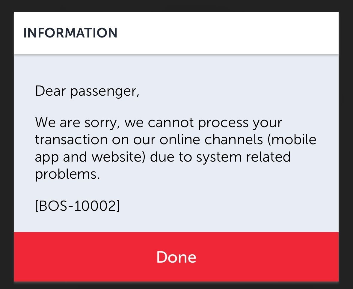 I'm unable to reserve flights on TK website or mobile app. Getting the error BOS-10002.