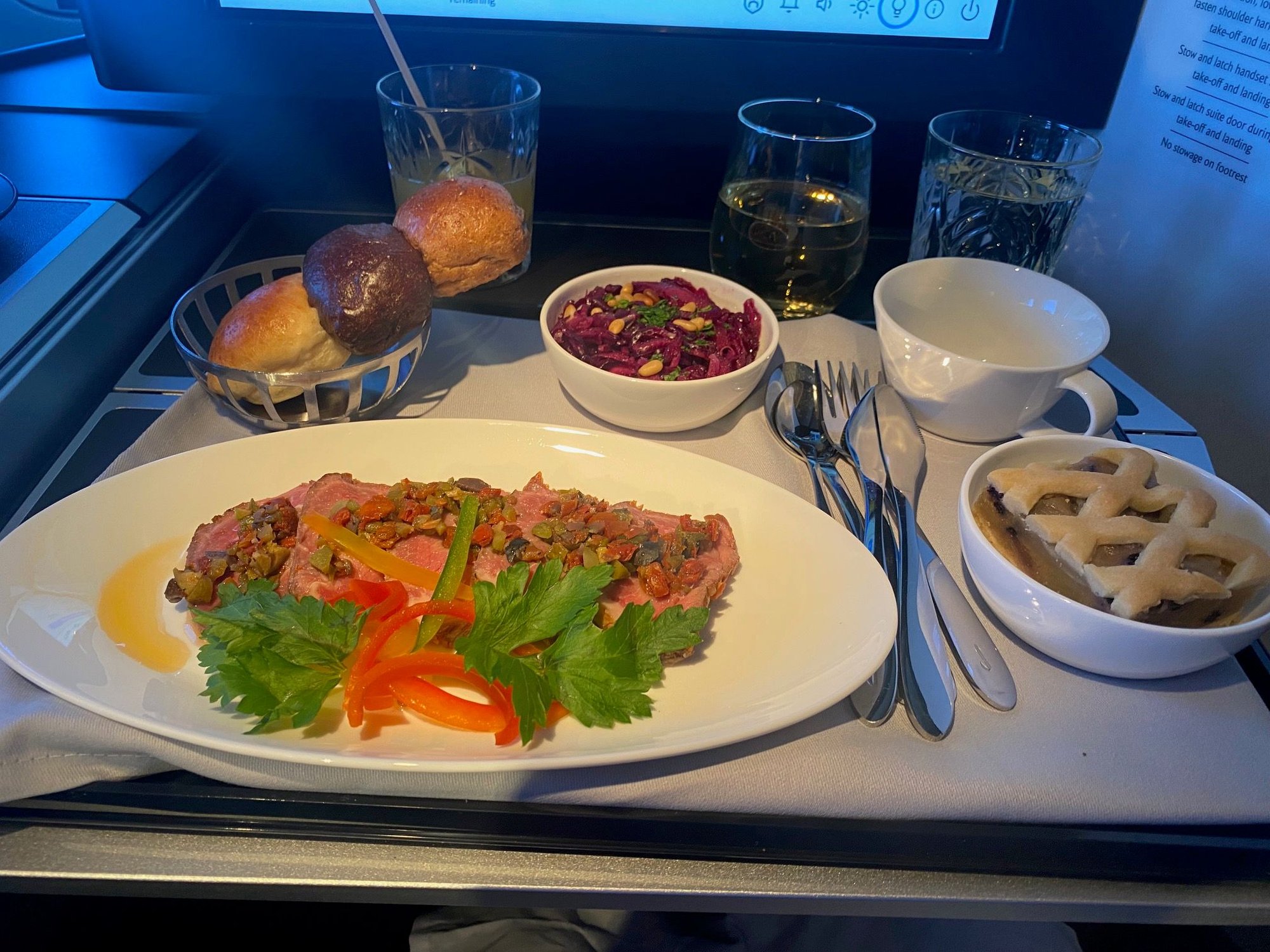 KSML BA167, LHR-TLV 1st May. I hadn't thought of taking pictures of this meal, so no picures of the starter or salad, but the ribeye steak main course just blew me away!