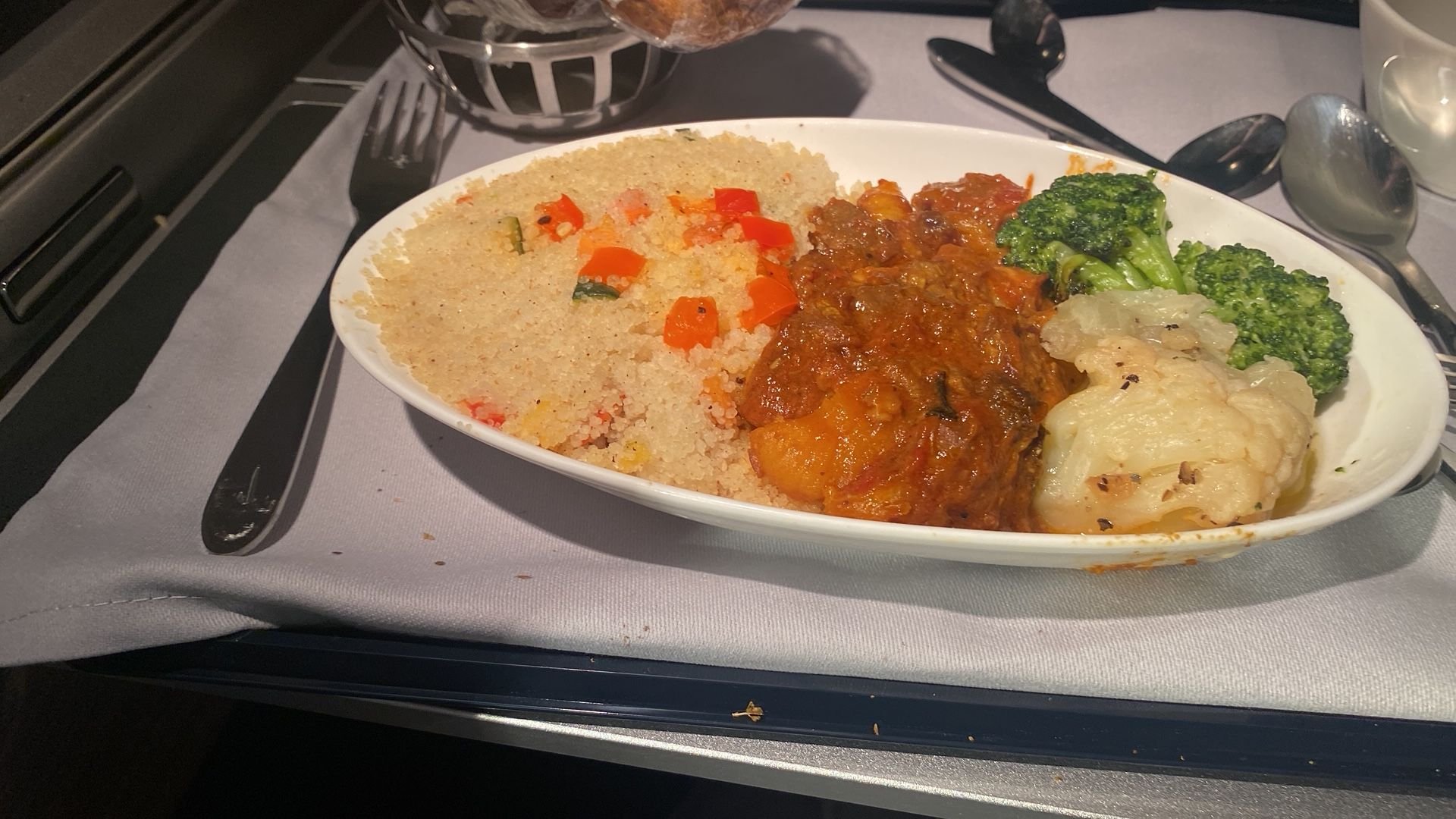 Main course, lamb tagine. Very tasty, but too much couscous for my liking