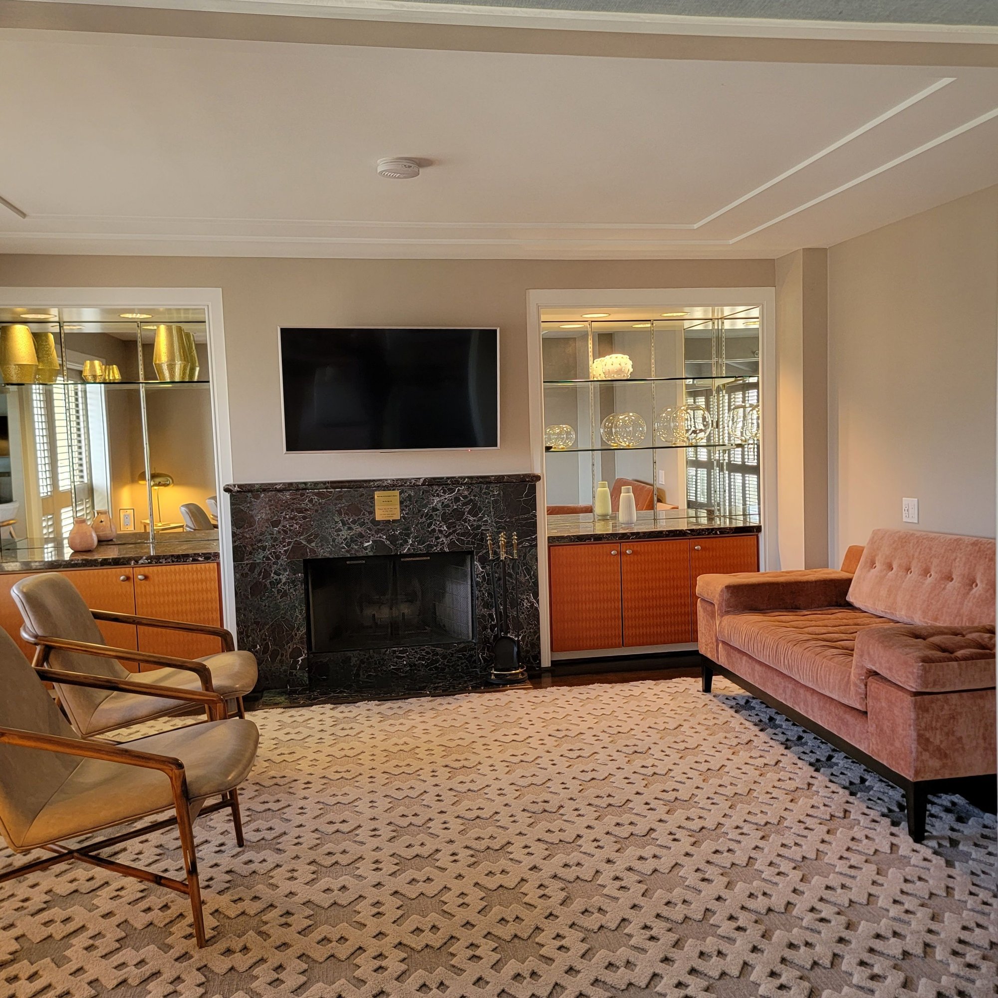 Upon arrival, the valets were very friendly and quick to help with everything, check-in was a breeze, and we were ushered to the beautiful suite where the bellman was quick to help me rearrange any furniture as necessary to suit our preferences. The pullout sofa was in the master bedroom by default, so we decided to move that into the living room, and we then arranged for housekeeping to bring two rollaways, which was no trouble at all. Pics of the suite after moving the green pullout from the master and doing a little bit of rearranging but before the rollaways came: