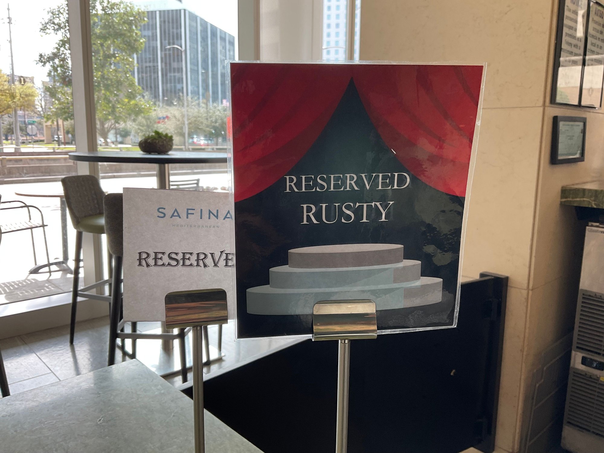 The gentleman on the left is the hotel's own Mr. Rusty.
