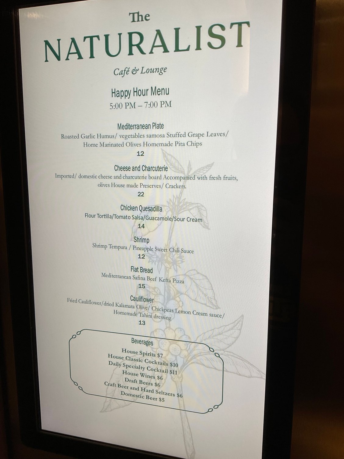 Snack menu at the bar