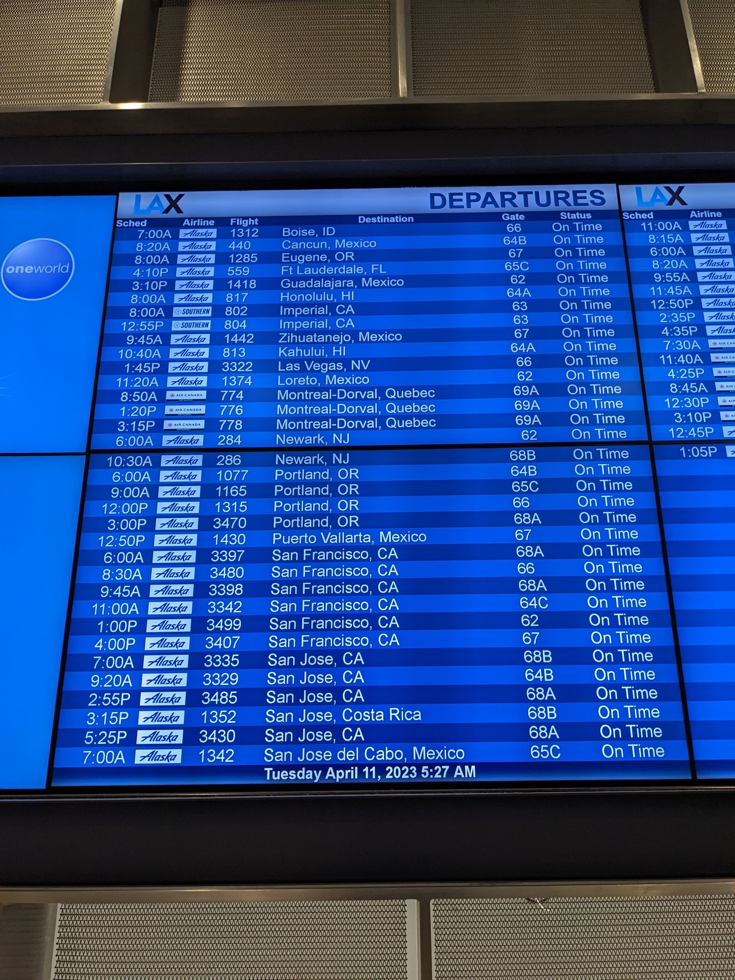 4/21/2023 Friday LAX-OAK/SFO-SEA-ANC