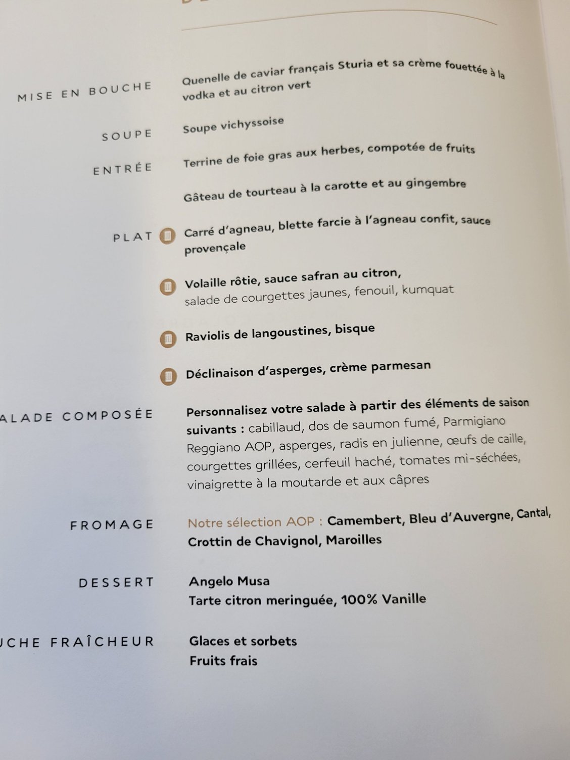 All parts of the experience yesterday went very well. I was picked up in Paris by a Maserati Quattroporte with a great driver. In the LP lounge I had only the smoked salmon and Veuve Clicquot so no pictures to post. I was driven to the plane in a Porsche and it appears all the cars for tarmac driving or nearly all have been replaced with Porsches. I saw a few of the older LP cars in front of T2E LP entrance. The meal on board was actually one of the best meals I have had in the air. The crew was great. From IAD I had a Delta itin which was separate from my AF one which was no problem. I was escorted to the separate LP section of the AF lounge and the on ot the "unrelated" Delta flight. Quite a lovely travel day.