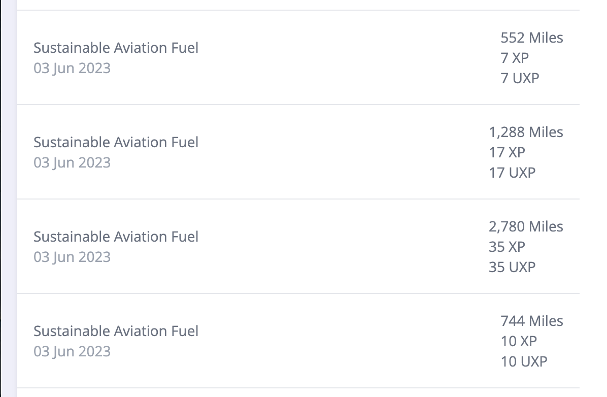 I managed to get SAF 4 times for a total of 69 XP (for science...) and everything posted either instantly or the day after the flight, this was on a set of 2x2 flights, 2 weeks ago.