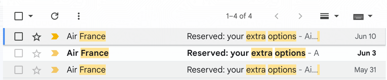 Don't look at the below dates, it shows the 3rd, but all options were purchased in different phases of the booking (before OLCI, while waiting for connection in AMS, before departure of the first return flight and while on board after boarding completed for the last leg)