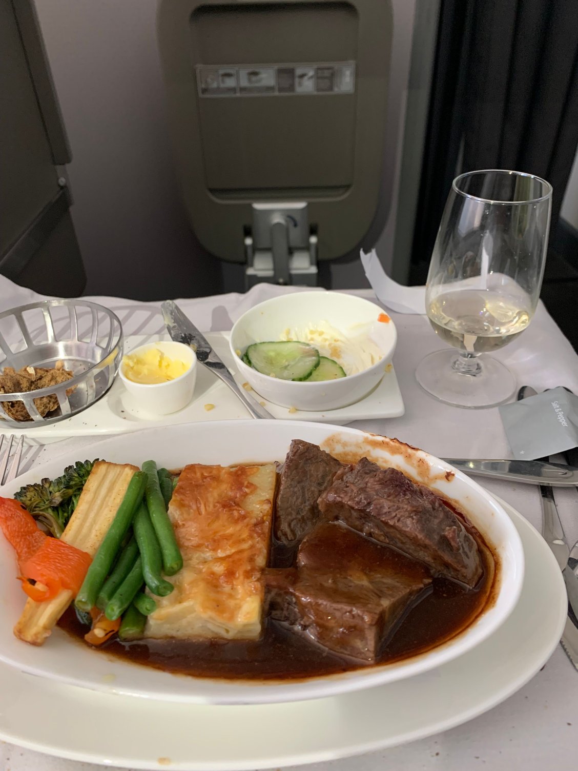 Matters did not bode well as we had to from a B gate on a bus all around Heathrow to climb a load of stairs aboard. We were greeted by the IFL and one of the crew members, both gentlemen sporting earrings. I’m old fashioned and it went across the grain. Never again will I be surprised and teaches me that you should not judge a book by the picture on the cover. Lesson learned. The crew were out with the Champagne swiftly and I have no idea and care less whether they were offering water sparkling or otherwise. After a schlep through Heathrow and the bus, the Champagne hit the mark. Menus were offered and orders taken before take off. The crew were pro-active, charming, and totally focused on pleasing the passenger. We were looked after by the IFL himself. Nothing was too much trouble and everyone with whom I had contact was friendly and approachable. Maybe we just were particularly