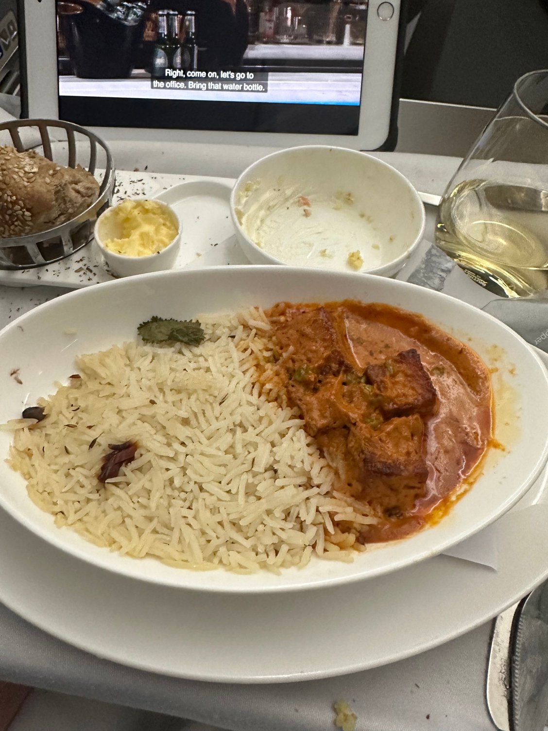 LHR-HND last week. I had the soup, paneer curry and the cheese plate (not pictured). I also forgot to take a picture of the waffles, but I did not enjoy them. They were rather bland and soggy. The fruit compote was much too sour.