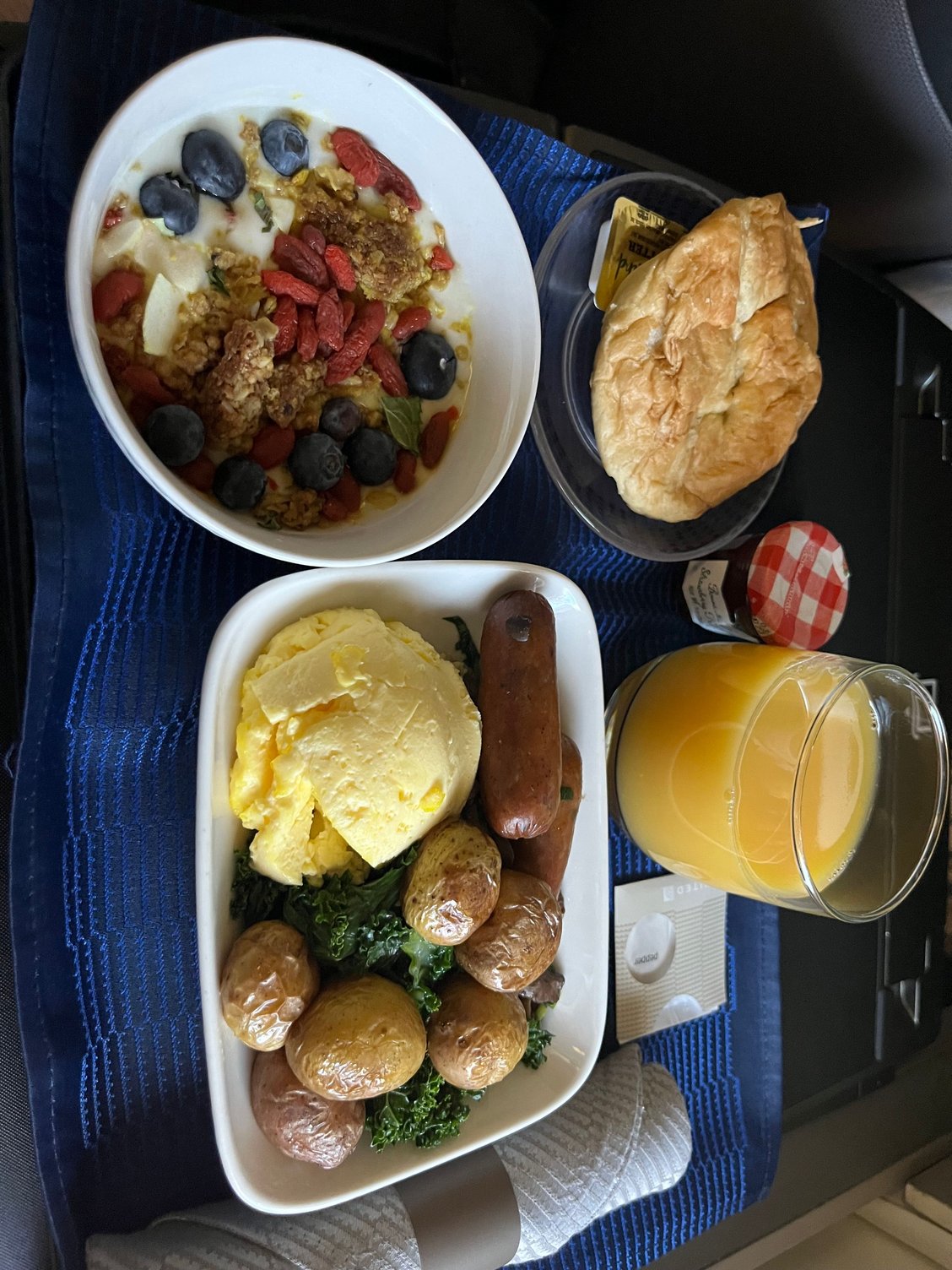 Pre arrival breakfast was either the crepe on the menu or the egg breakfast dish above. Was also given slippers (even though it was under 12 hours) and mattress pad.