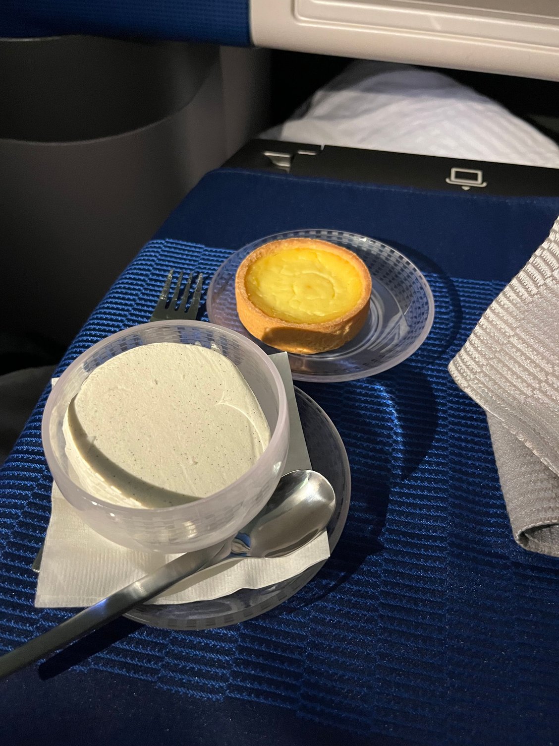 No PDB but delayed departure. Nuts with beverage choice provided. Got first choice of beef which was tender and flavourful. Dessert there was also egg custard tarts but not on the menu. FA allowed me to have both ice cream and tart.