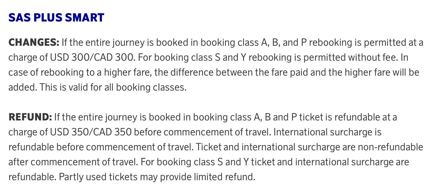 SAS Plus Smart NYC - EU Change/Refund Conditions