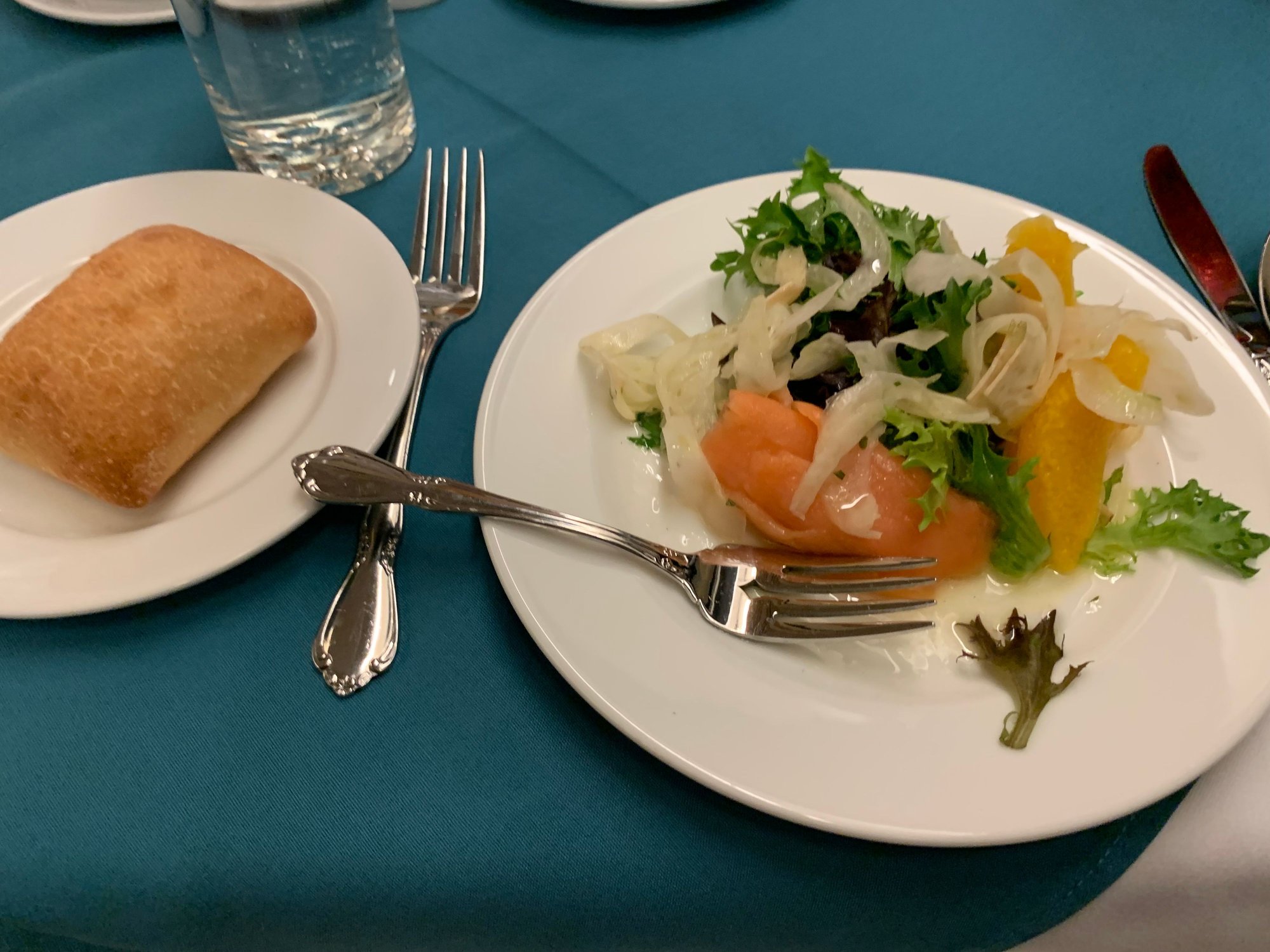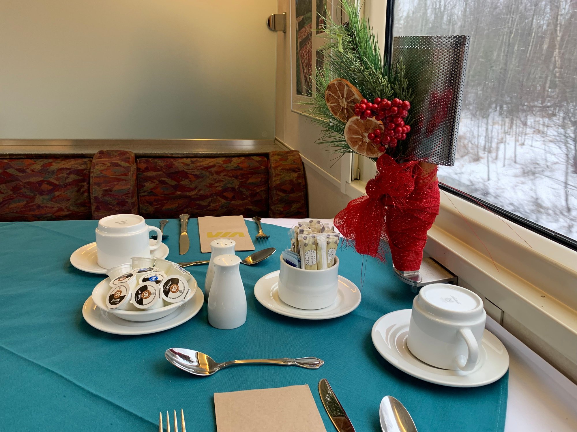 Many people have posted food pics on the Canadian and Corridor trains. Here are the meals served onboard the Montreal-Halifax train, aka the Ocean. This was on VIA 14, Montreal-Halifax, from Dec 2022. Unlike the Canadian, which uses HEP-1 cars with full kitchen, the Ocean uses Renaissance cars as dinning car, which only have convection ovens on board, as Renaissance cars were not designed for long distance service. Food is prepared on the ground and reheated and plated on board.