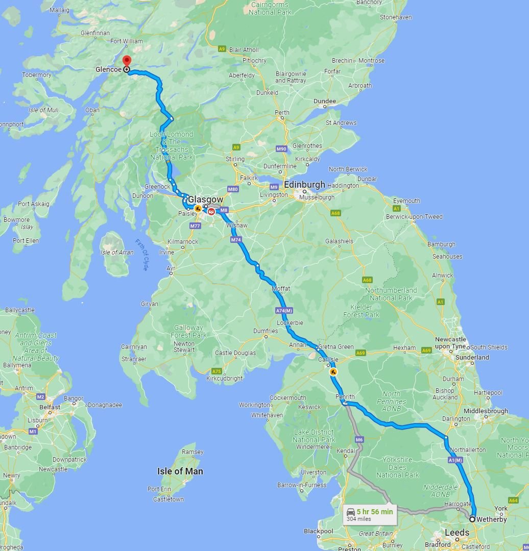 After a few days it was off to Scotland for the photo trip. Three of us were travelling up in one car, and we were breaking the trip with a couple of nights in Glencoe. The road trip was uneventful, and after about 6.5 hours we arrived at our hotel, The Clachaig Inn.