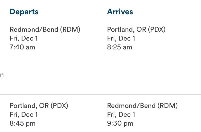Wish it left RDM a bit earlier in the morning and PDX later in the evening.