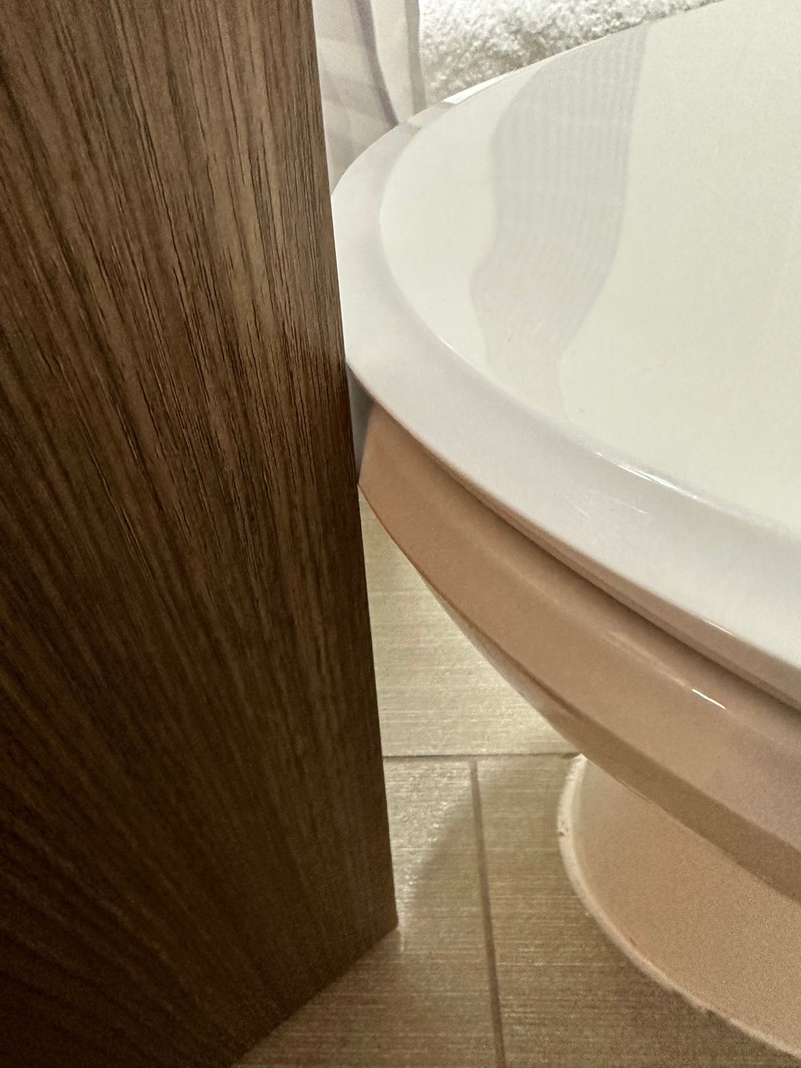 room: the room was spacious with the same consistent layout of Hyatt places except for maybe the bathroom. It was cramped where every time I closed or open the bathroom door it would hit the toilet seat (pic below). I see some folks mentioned the fridge light, which actually can be turned off. The switch is located on the ceiling of inside the fridge to turn off. The wet bar area sink had some plumbing issues since water didn’t drain. I also noticed for the sink and shower that the water would get backed up slightly, so it drains very slowly. The AC was loud at times and you can hear cars honking or reviving their engines nearby.