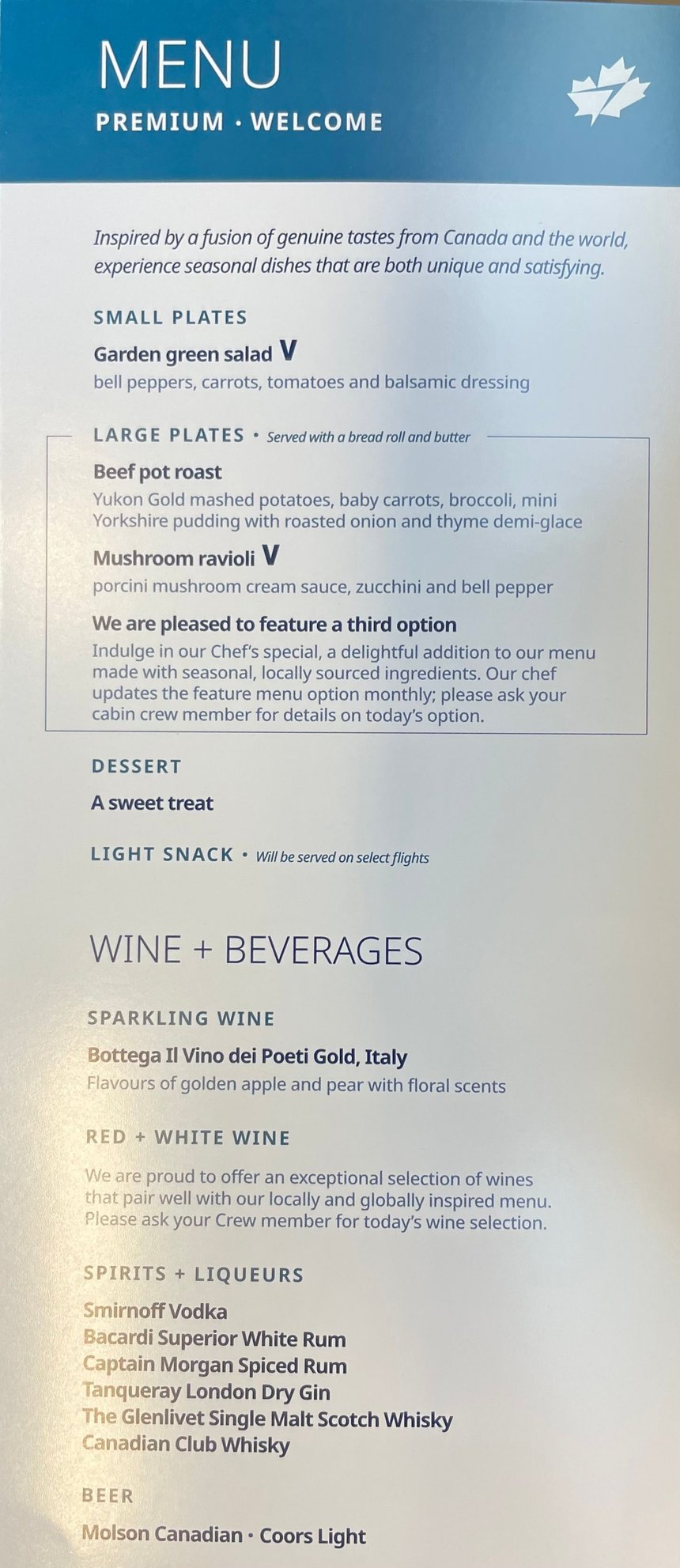 Does anyone know the current menu for premium seats on a Canada/US flight, or have a photo?