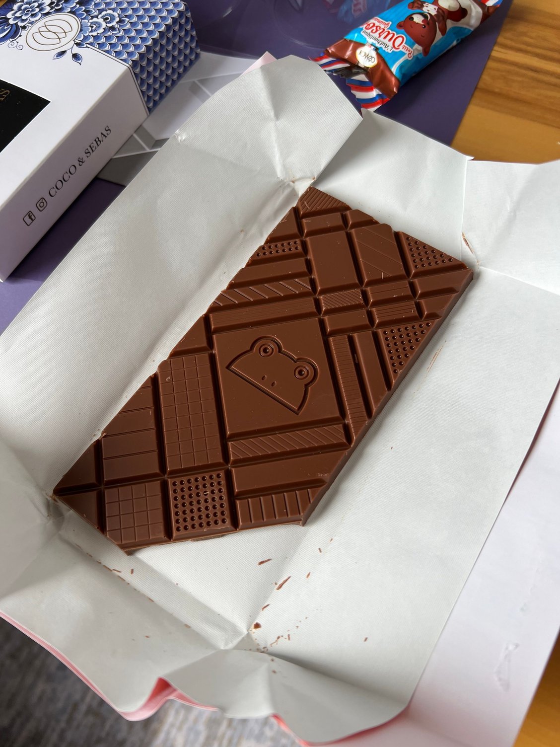 - Tasty bar of chocolate waiting in room as a welcome gift (along with wine, which I don't drink)
