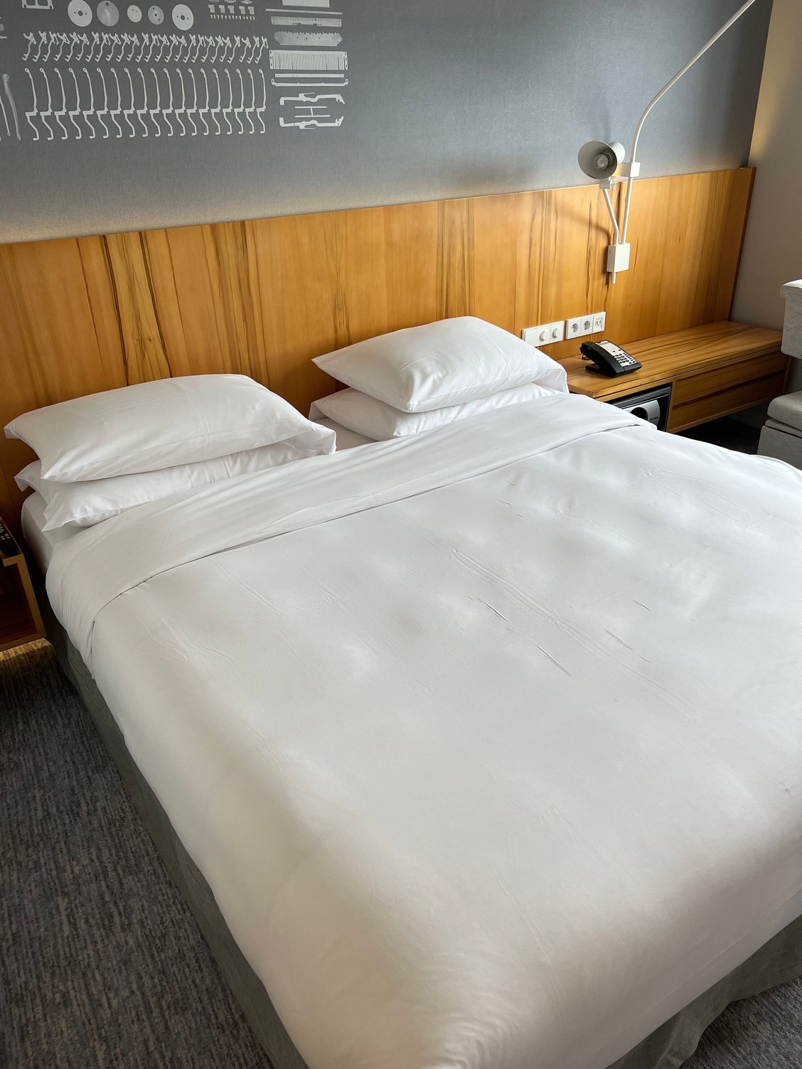 - The bed is quite comfortable - plush covers (rare for a HR), plush pillows, decently medium / plush mattress (though, I think it was two connected to each other) - no issues sleeping in this bed for two nights
