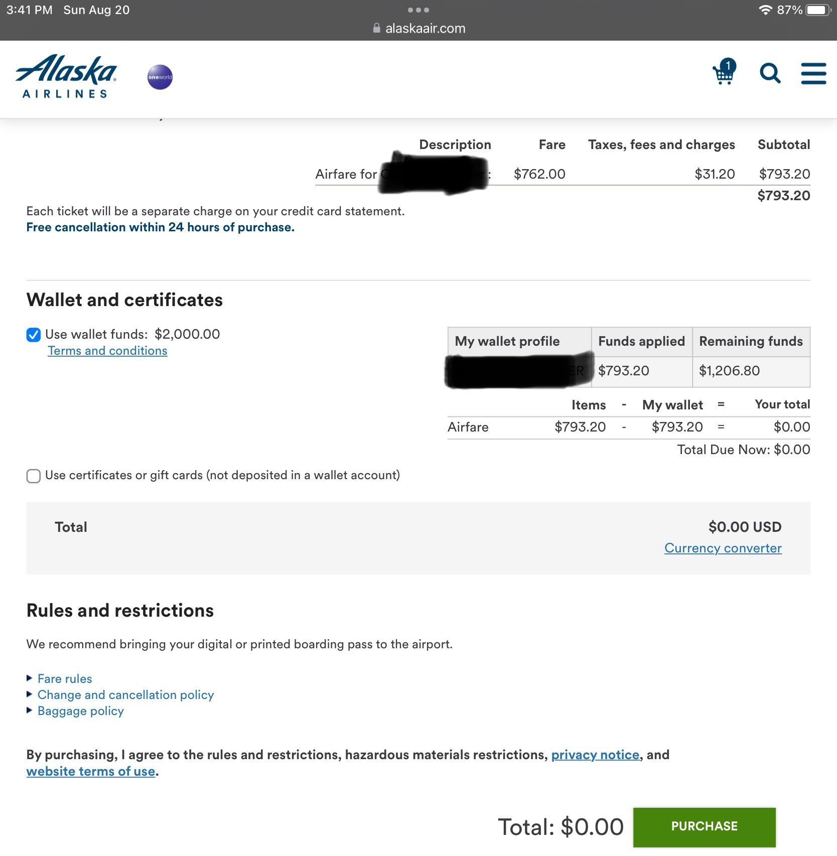 I have $2k in my wallet from Costco gift cards. And the Alaska website offers me to use the wallet credit for the entire purchase: